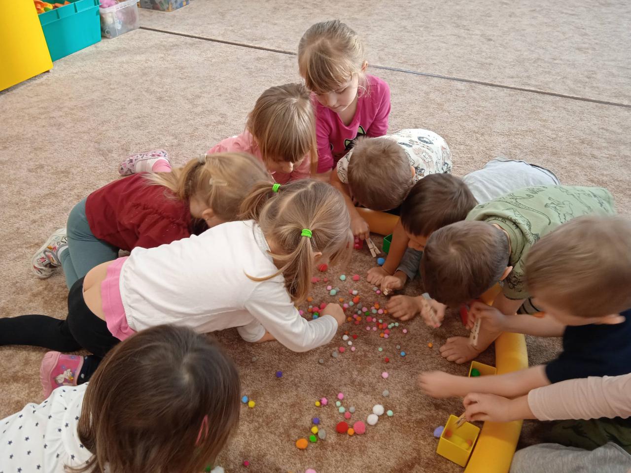 Ve čtvrtek si děti ráno hrály na doktory a sestřičky, tak to ve třídě bylo jako v ordinaci :), potom si s paní učitelkou povídaly o ptáčcích a vyzkoušely jemnou motoriku s kolíčky a zrníčky a dle fantazie vytvořili cestičku z víček ke krmítku. Odpoledne kluci opět vyzkoušeli nové vláčky od Ježíška.