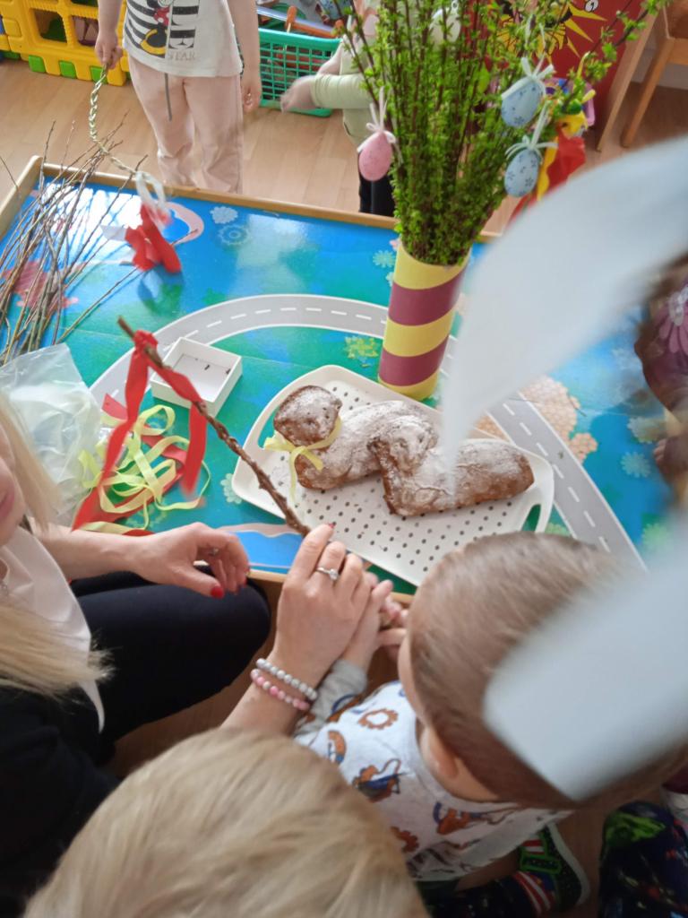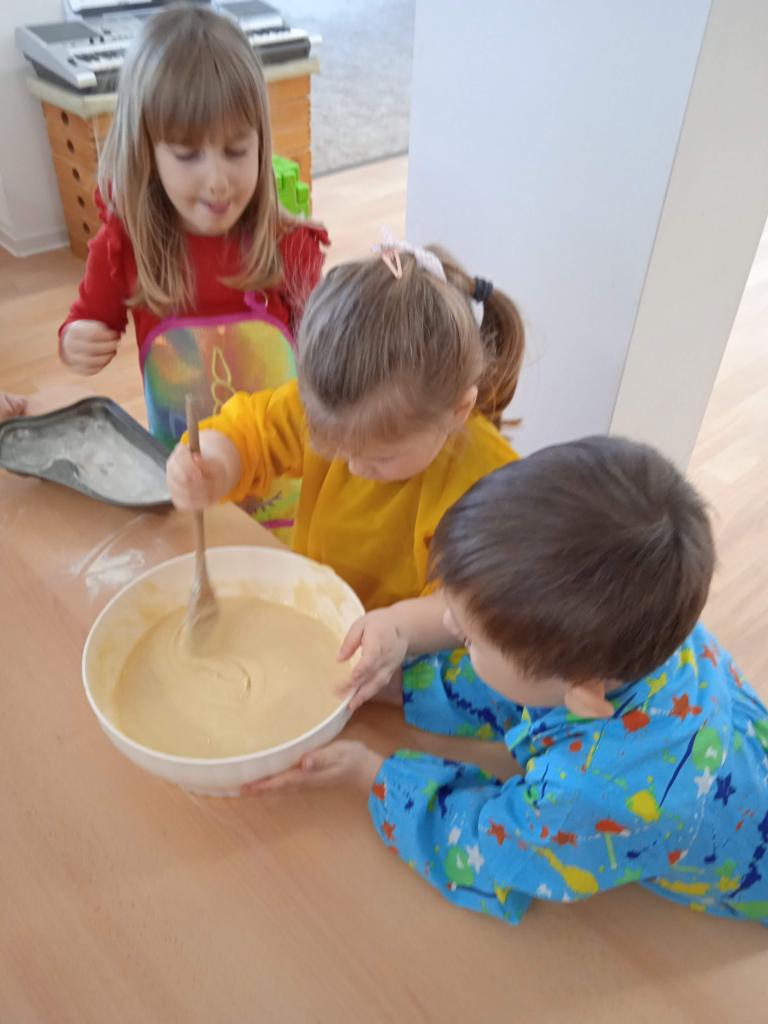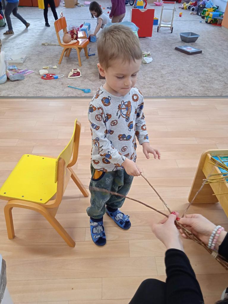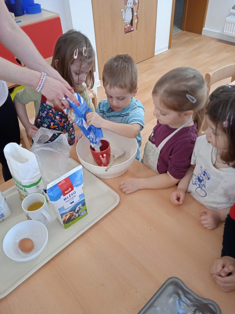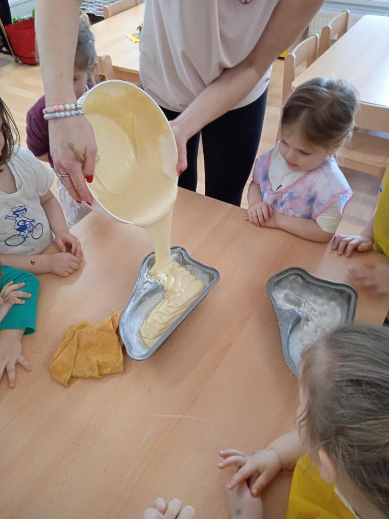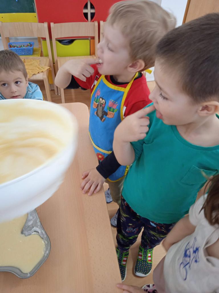 .. Další týden si děti zkusily zaplétání pomlázek ze tří proutků s dopomocí paní učitelky, uplekly si dva beránky, dozvěděly se o velikonočních tradicích a a vyzkoušely si šupání ve školce, kde si vykoledovaly malou sladkost u Soviček, u kuchyně i ve své třídě. Děti vše bavilo, zejména barvení vajíček a pečení beránka s ochutnávkou těšta (dbali jsme na zvýšenou hygienu).