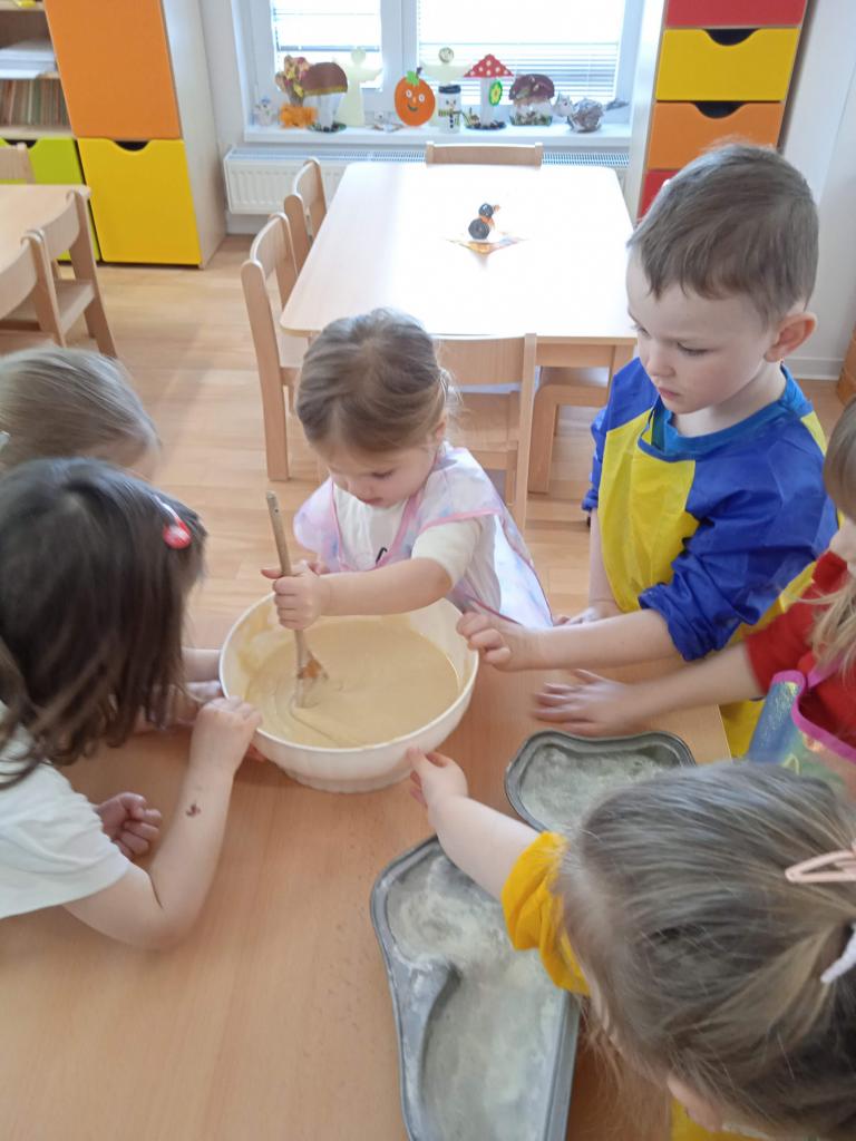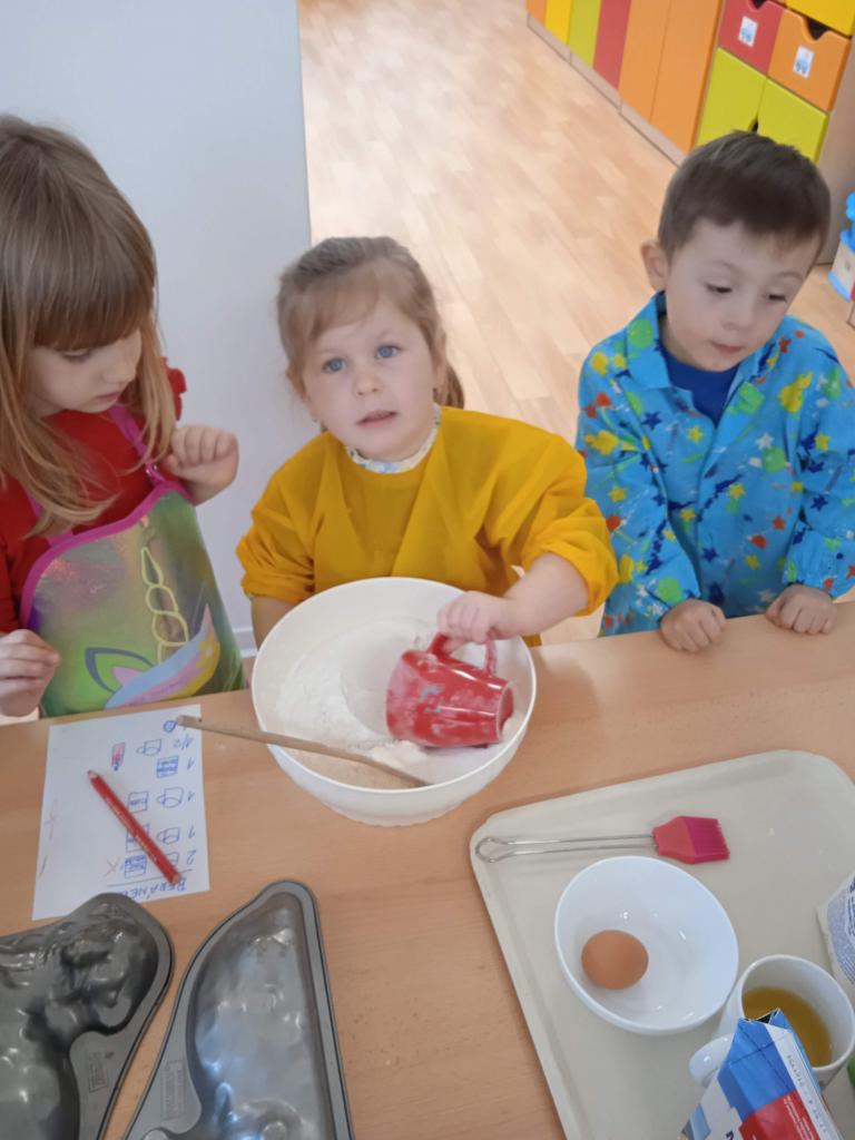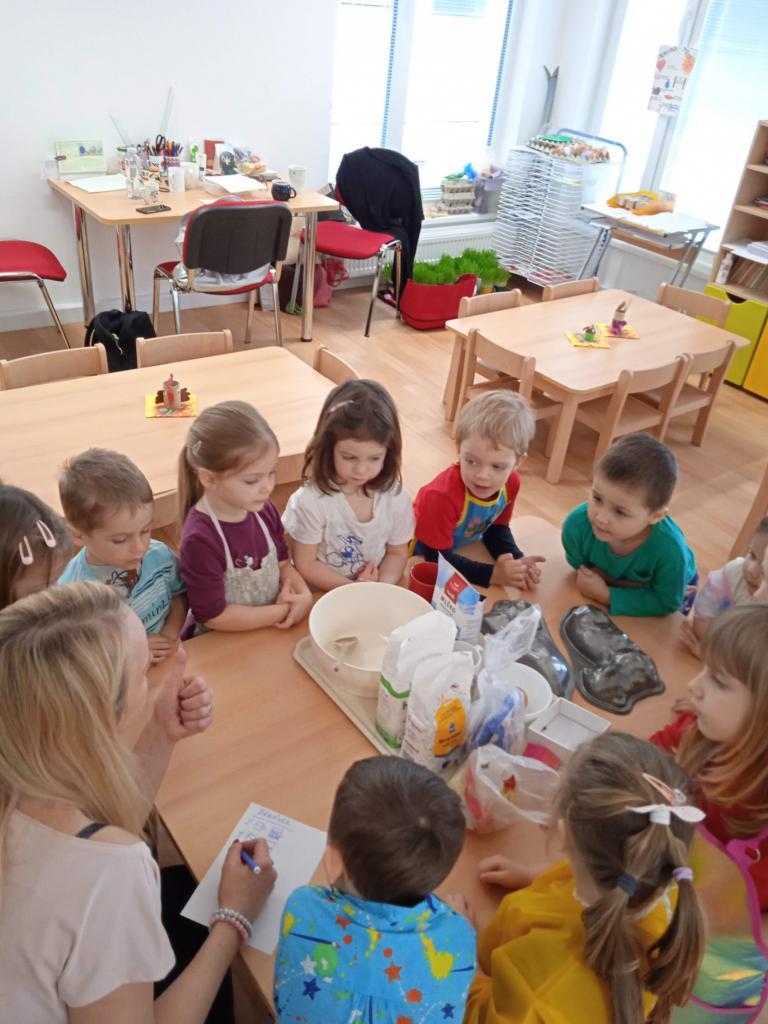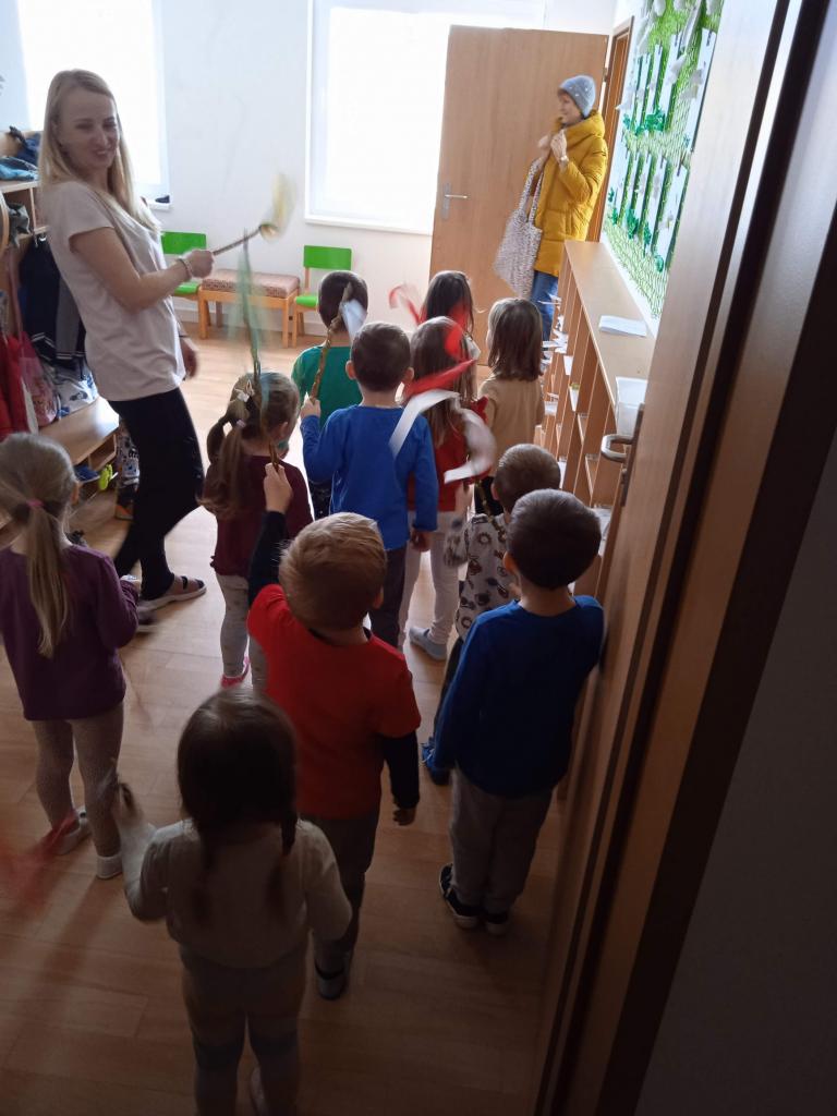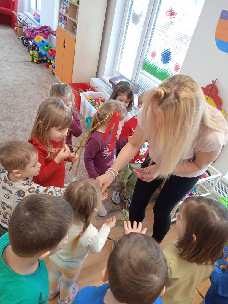 .. Další týden si děti zkusily zaplétání pomlázek ze tří proutků s dopomocí paní učitelky, uplekly si dva beránky, dozvěděly se o velikonočních tradicích a a vyzkoušely si šupání ve školce, kde si vykoledovaly malou sladkost u Soviček, u kuchyně i ve své třídě. Děti vše bavilo, zejména barvení vajíček a pečení beránka s ochutnávkou těšta (dbali jsme na zvýšenou hygienu).