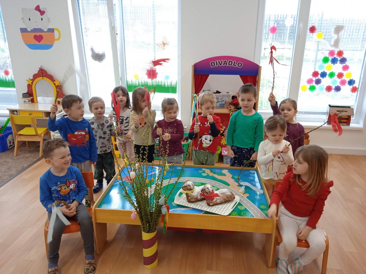 Přípravy u Koťátek na Velikonoce probíhají už od minulého týdne, kdy slavnostní nálada začla oslavou Elenky, potom si děti s paní učitelkou nabarvily krásná vajíčka, zasadily osení do květníčků, které přes víkend hezky vyrostlo, naučily se písničku O zajíčkovi a koledu Hody hody doprovody..