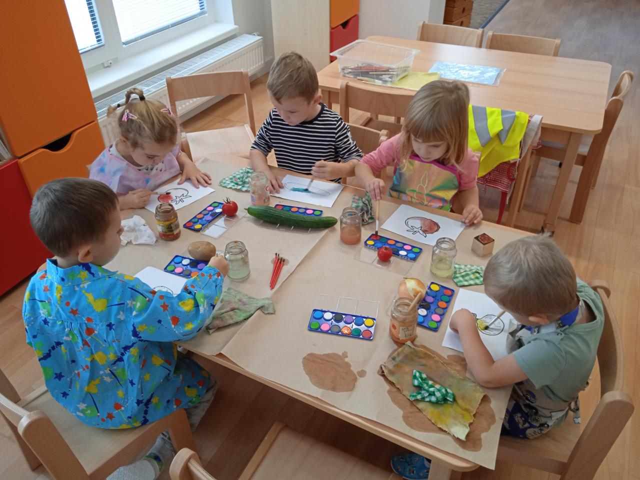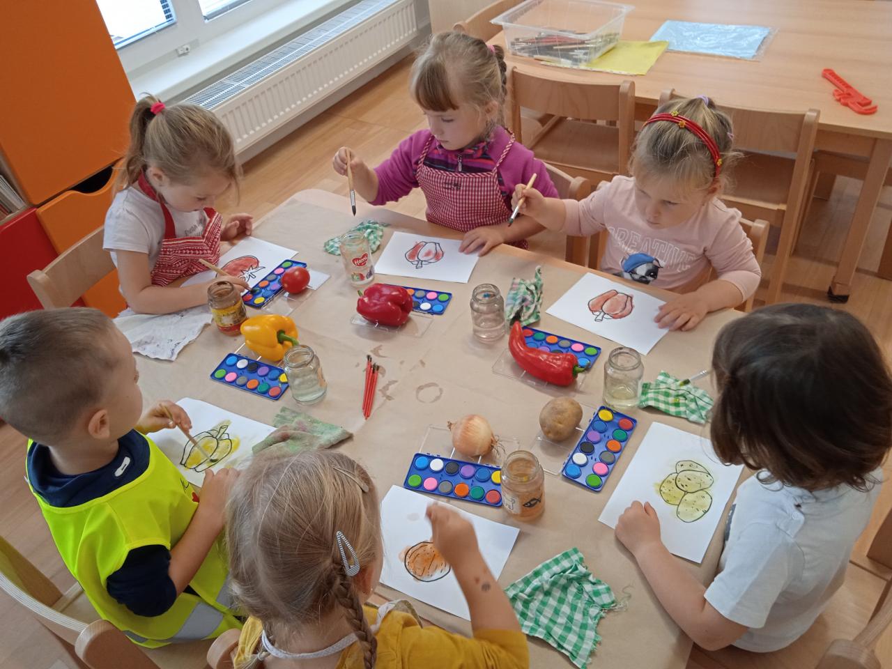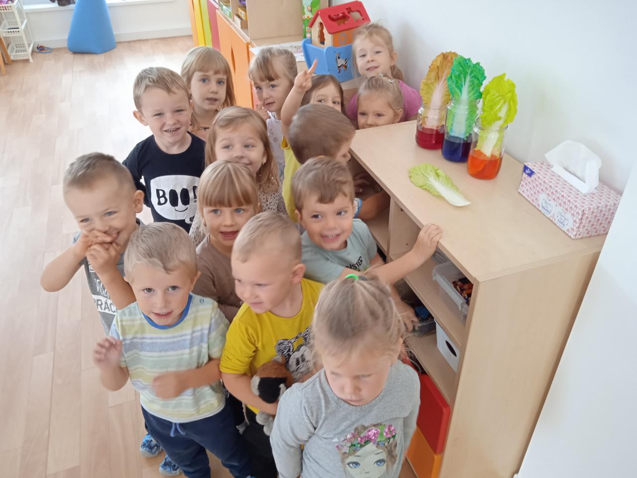 Celý týden děti poznávaly různé druhy zeleniny, nakrájely některé na salát, který jsme snědly, ostatní ochutnávaly, Ti statečnější i syrový brambor nebo petrželku :) dělaly jsme pokusy s ledovým salátem a vyráběly :)