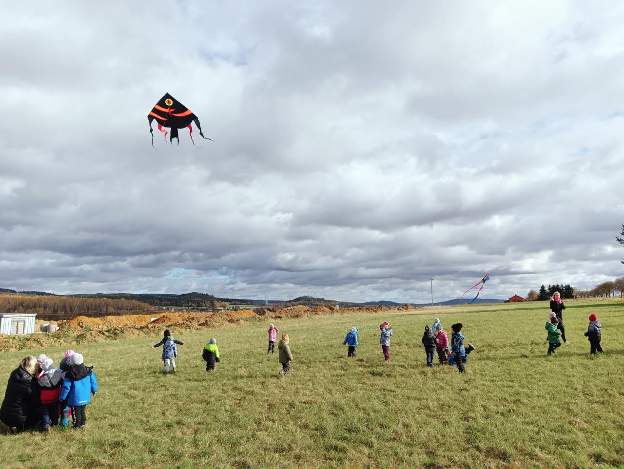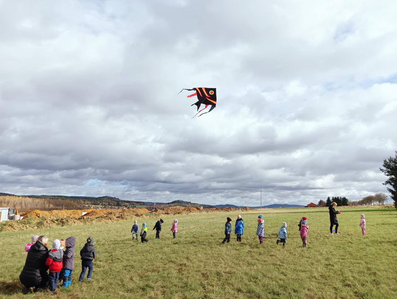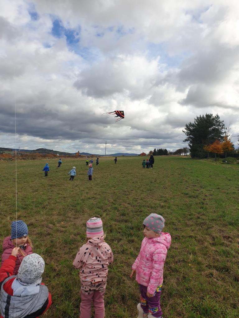 Děti si celých 14 dní hrály, tvořily a dozvídaly se, jak vlastně lítá papírový drak, jaké je pro létání vhodné počasí, také několikrát draka pouštěly na louce u koní a Za Humny, učily se písničku Máme draka.. Ve skupinkách i jednotlivě stavěli draky z přírodnin i stavebnic, naučili se hezky..