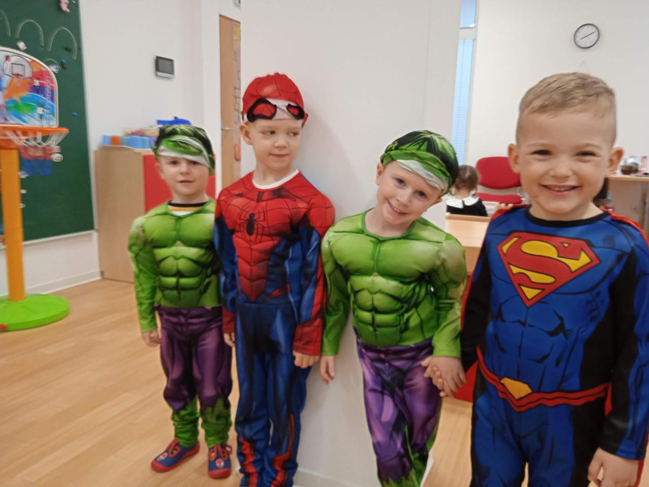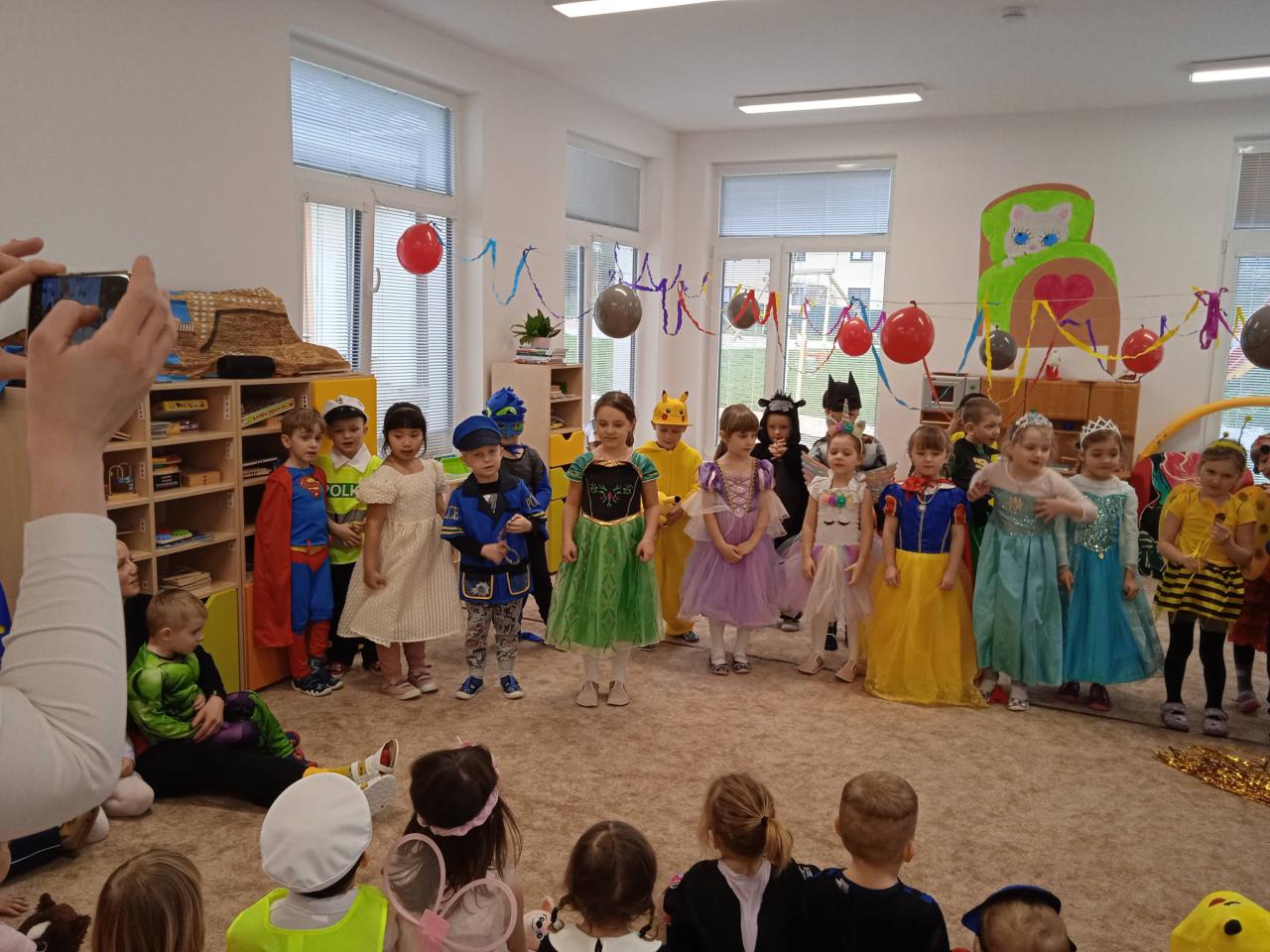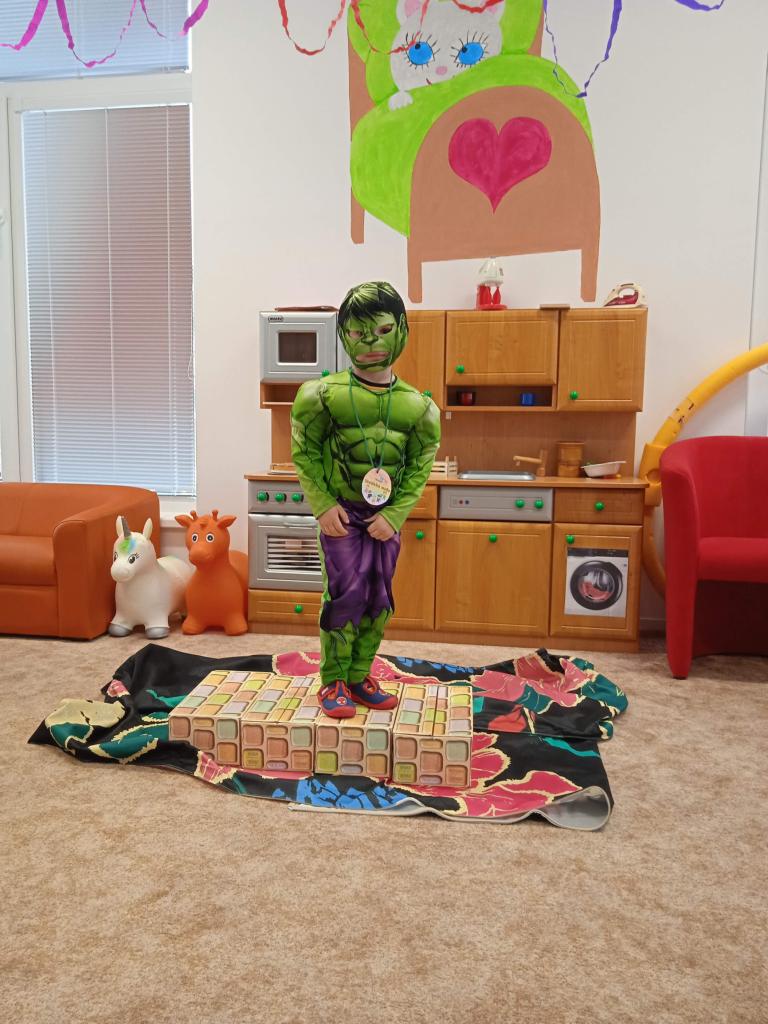 Tento den si všechny děti moc užily, všechny přišly v maskách. Mohli jsme se potkat se superhrdiny, vílami, princeznami, policajty, ale také fotografem, pirátem, zvířátky a pod.