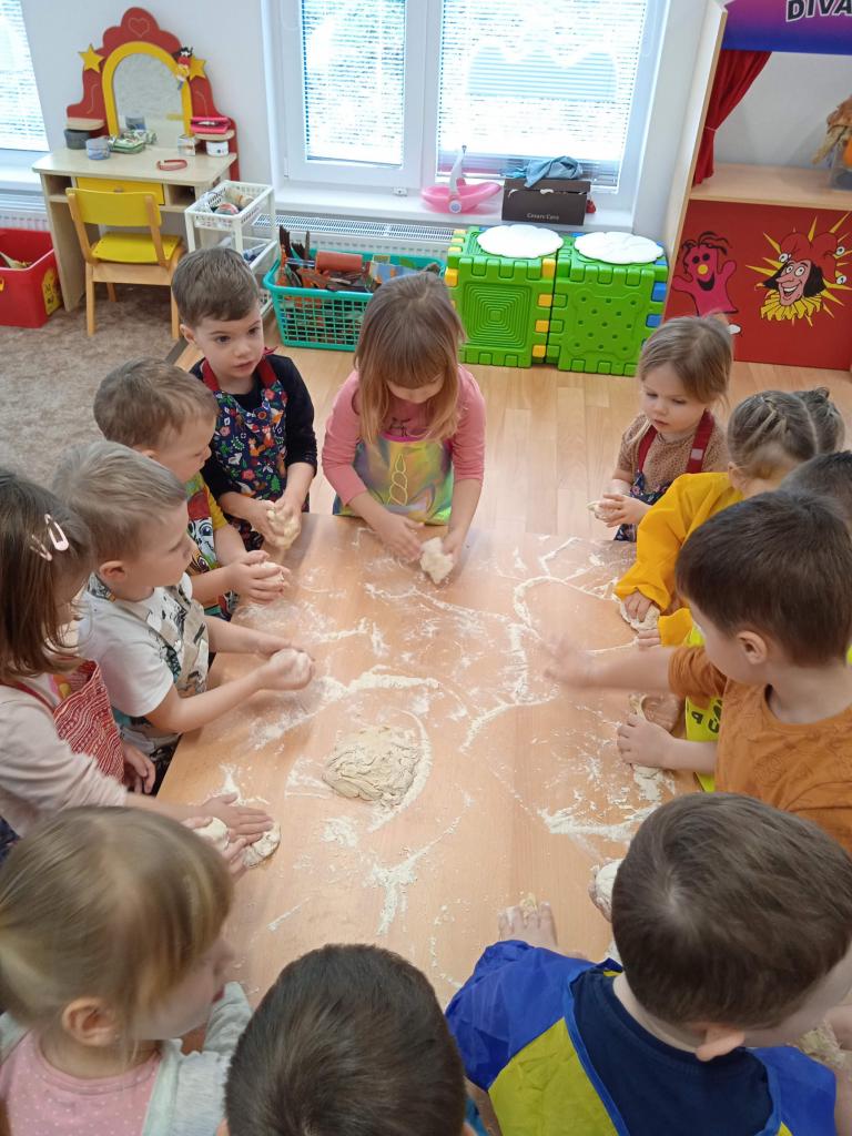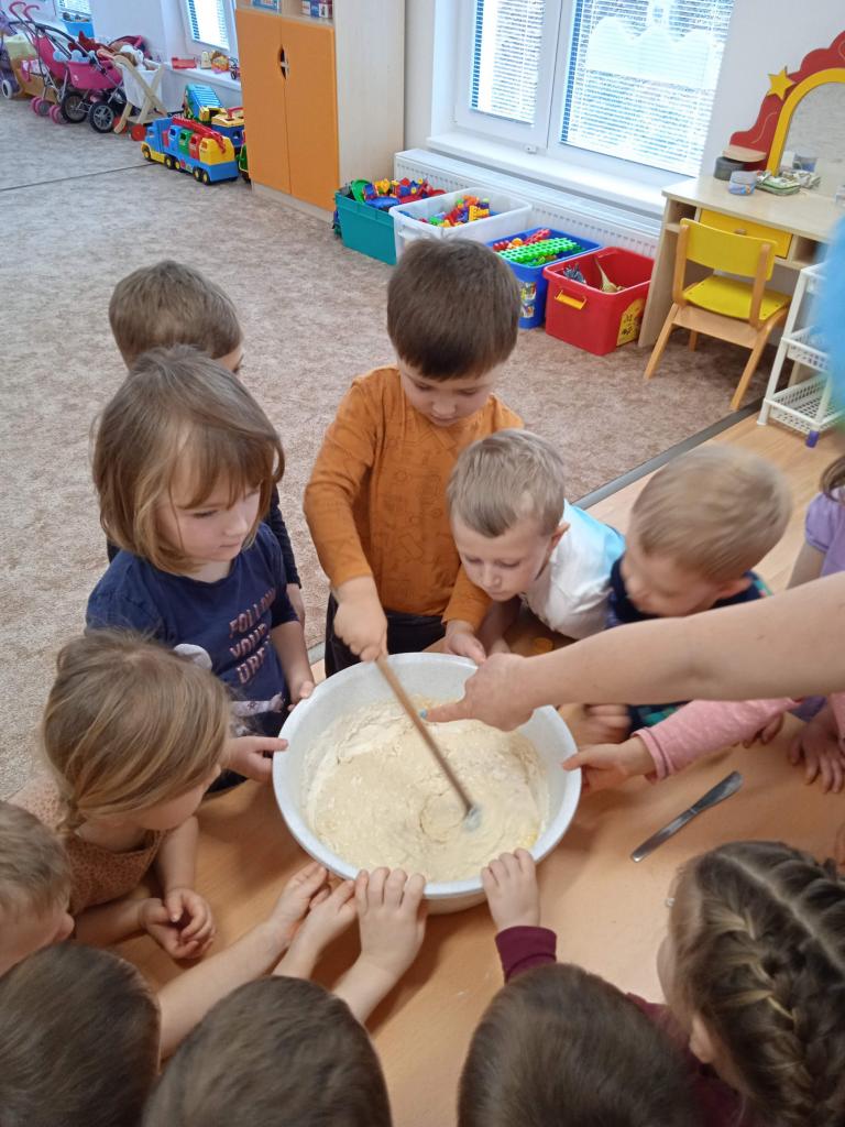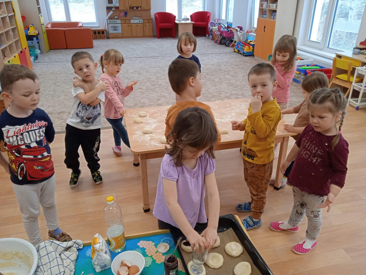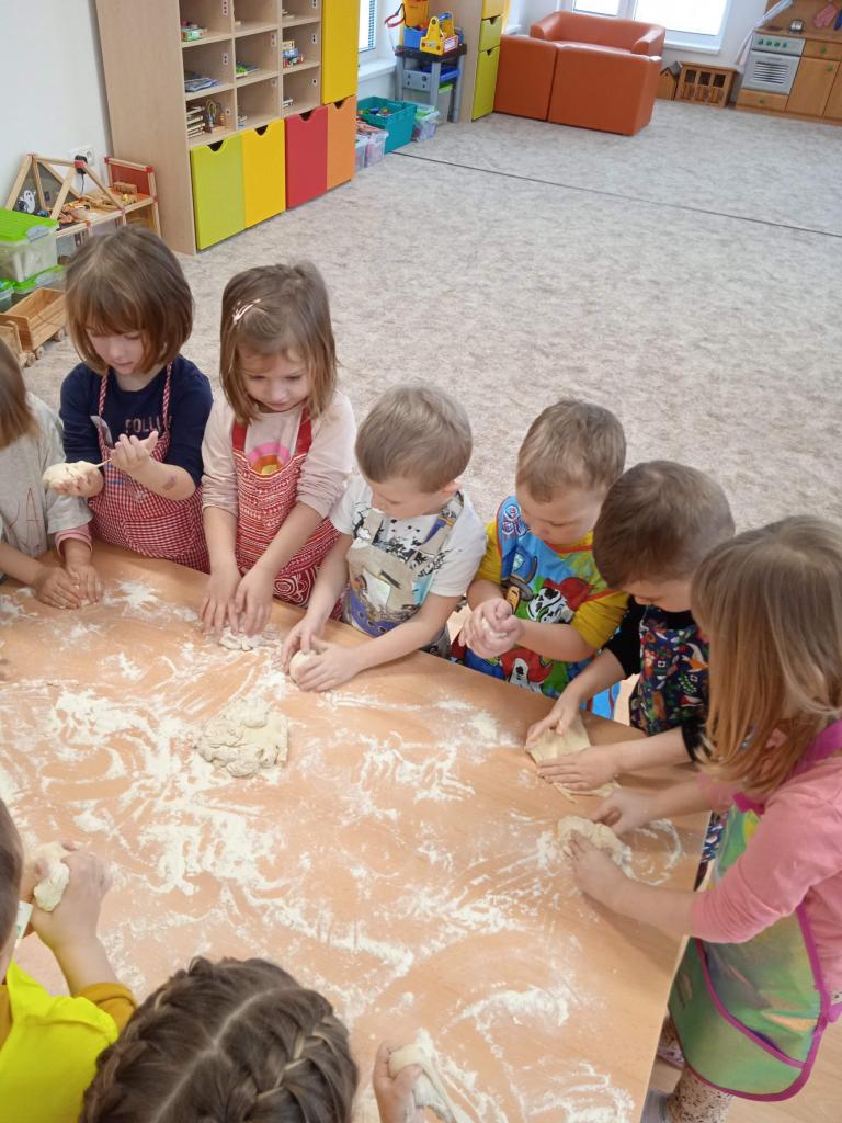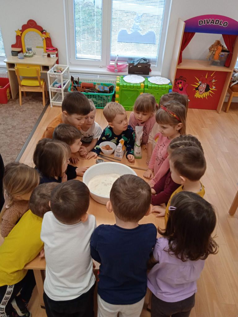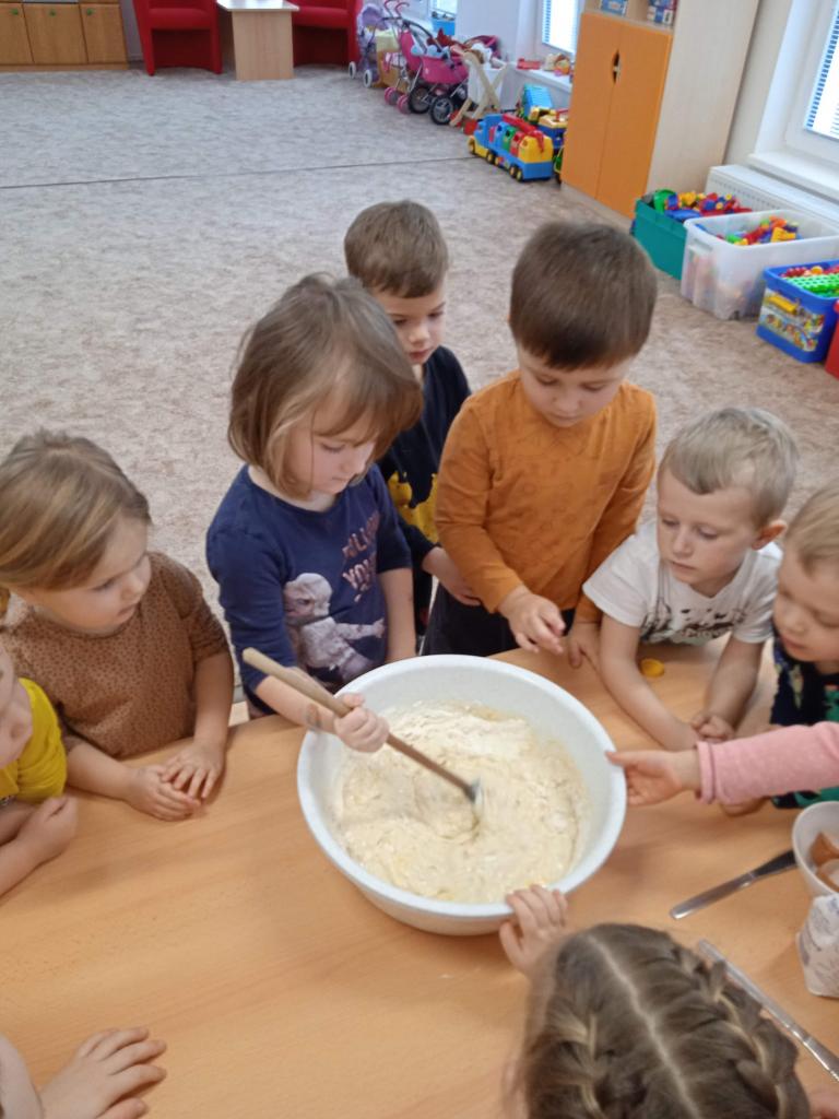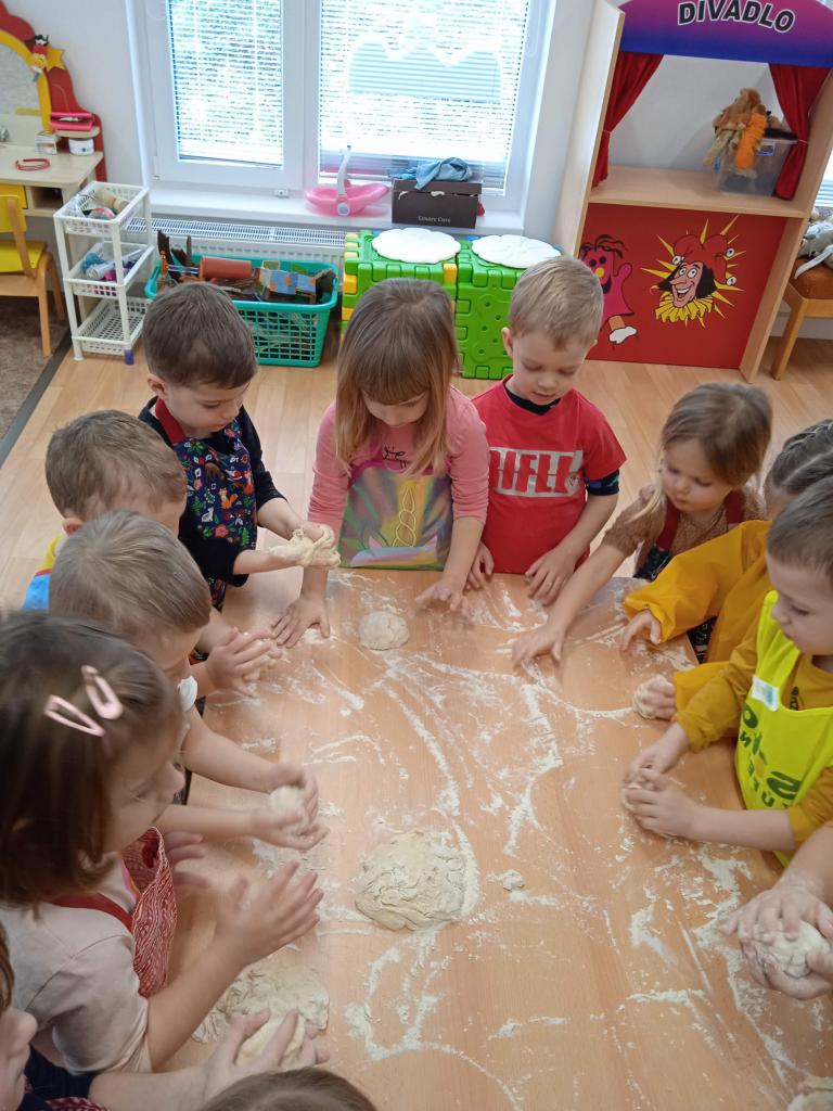 Dnes si dětičky vyzkoušely, jakou práci "to" dá, než se vyrobí dobrý koláček, připravily si suroviny, které promíchaly, potom si každý z bochánku těsta uhnětl svůj koláček, které nám poté paní kuchařka upekla a koláček si každý vzal na cestu domů :-)