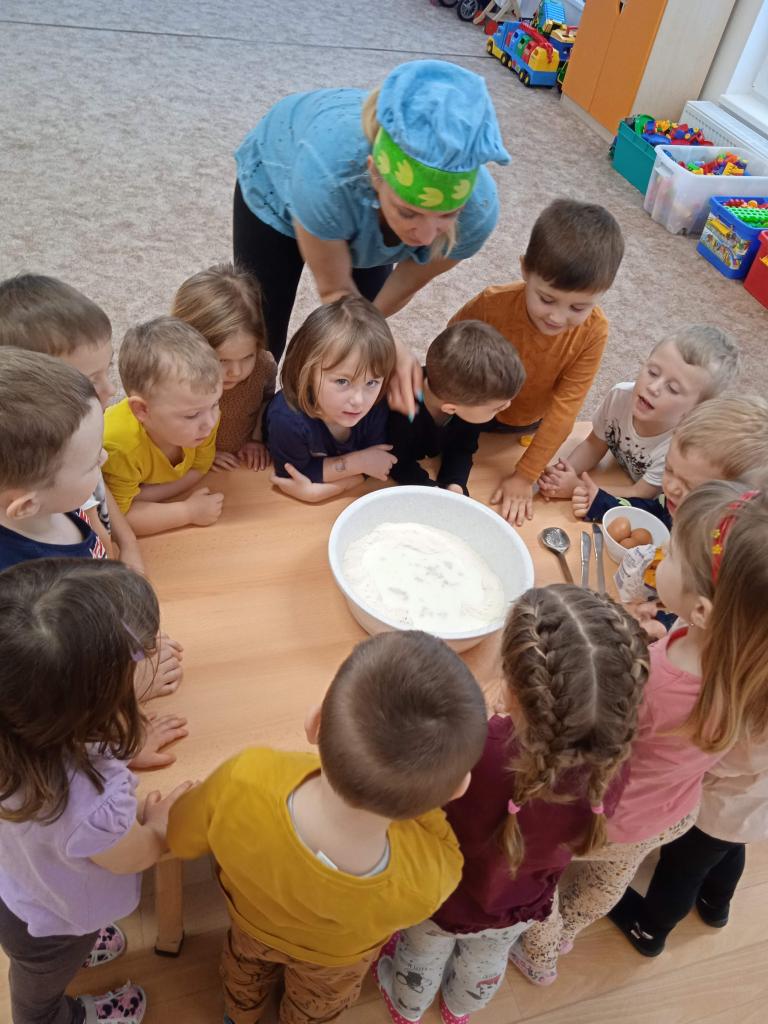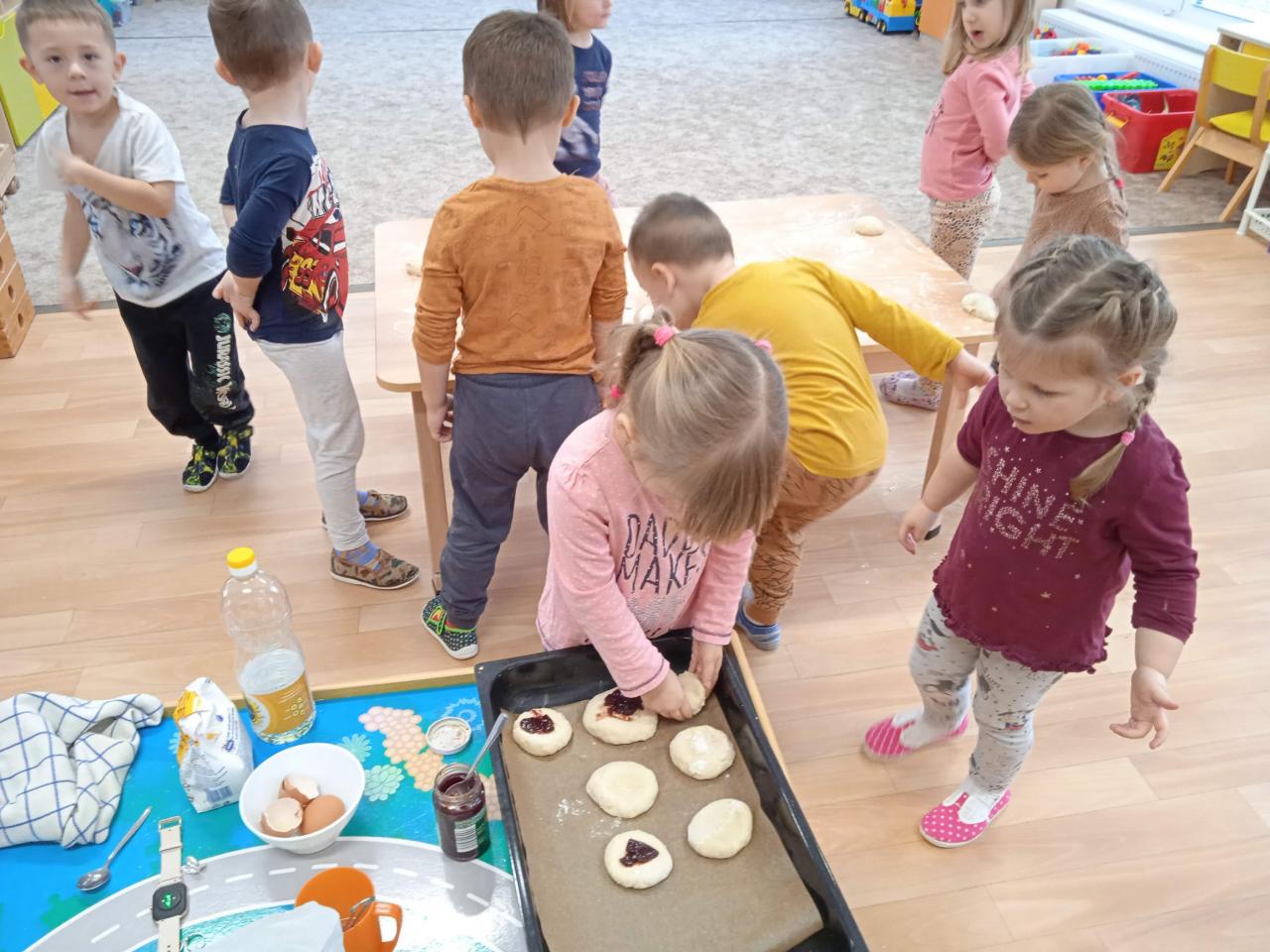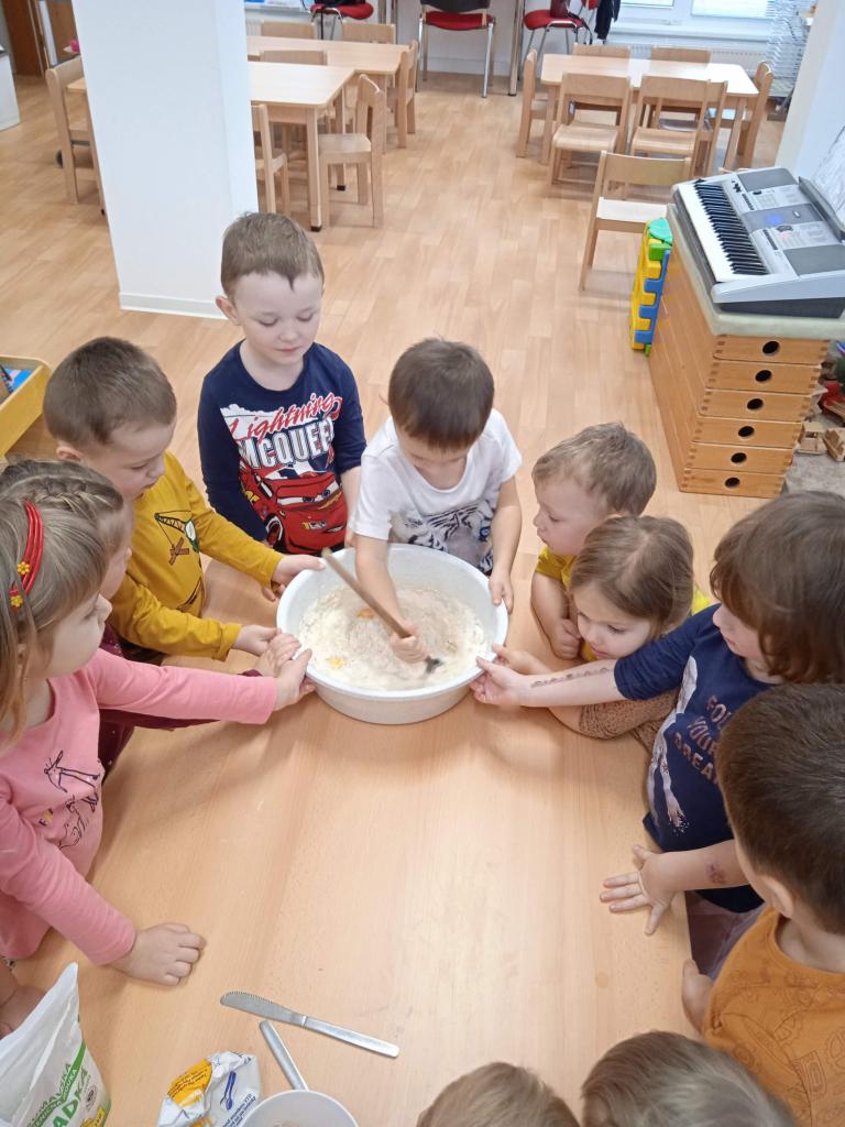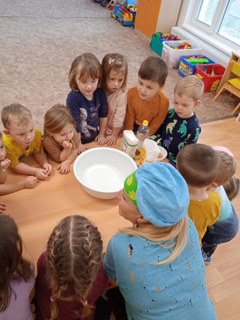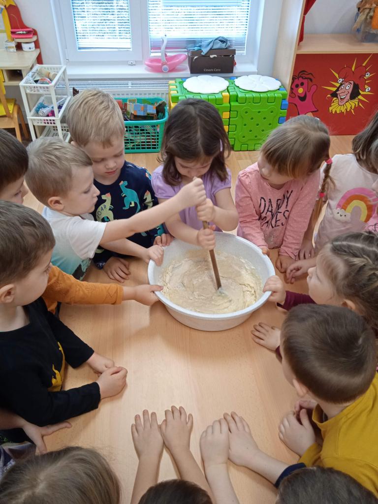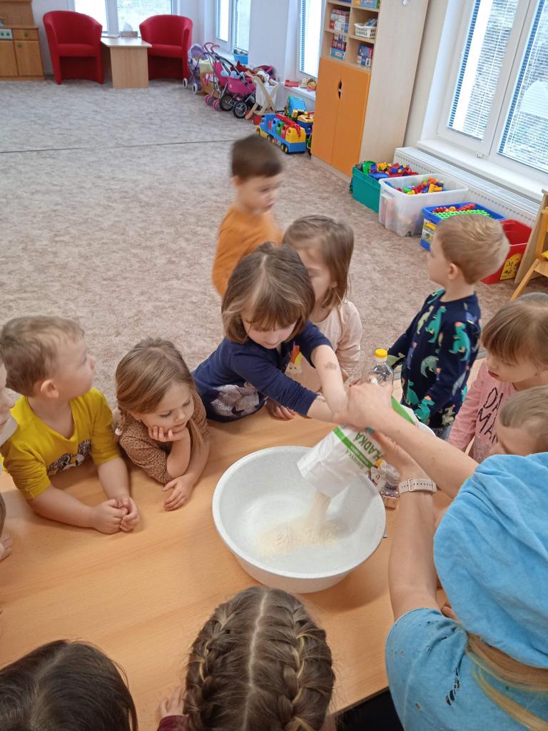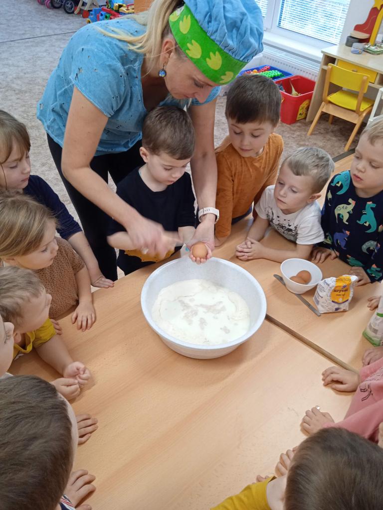 Dnes si dětičky vyzkoušely, jakou práci "to" dá, než se vyrobí dobrý koláček, připravily si suroviny, které promíchaly, potom si každý z bochánku těsta uhnětl svůj koláček, které nám poté paní kuchařka upekla a koláček si každý vzal na cestu domů :-)