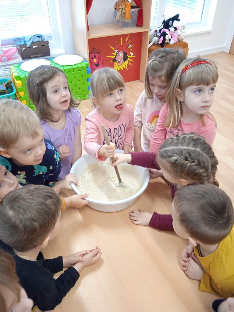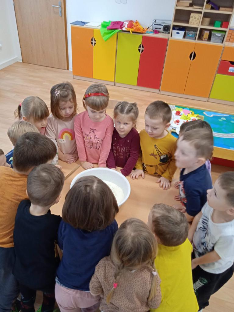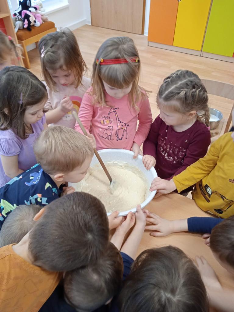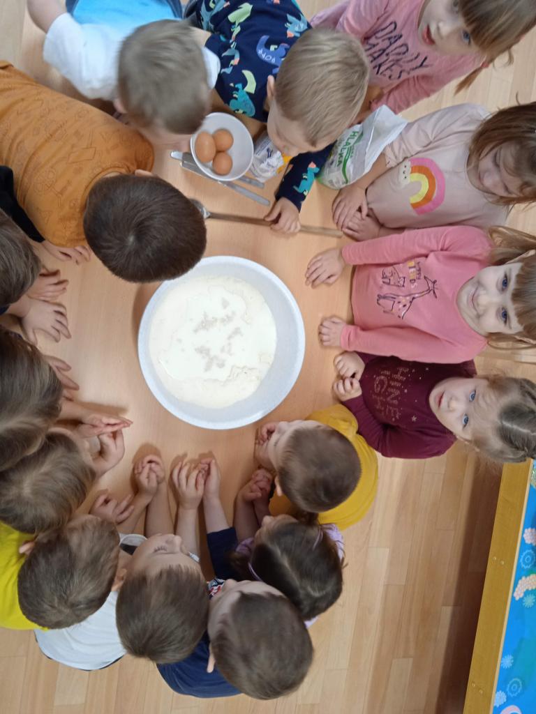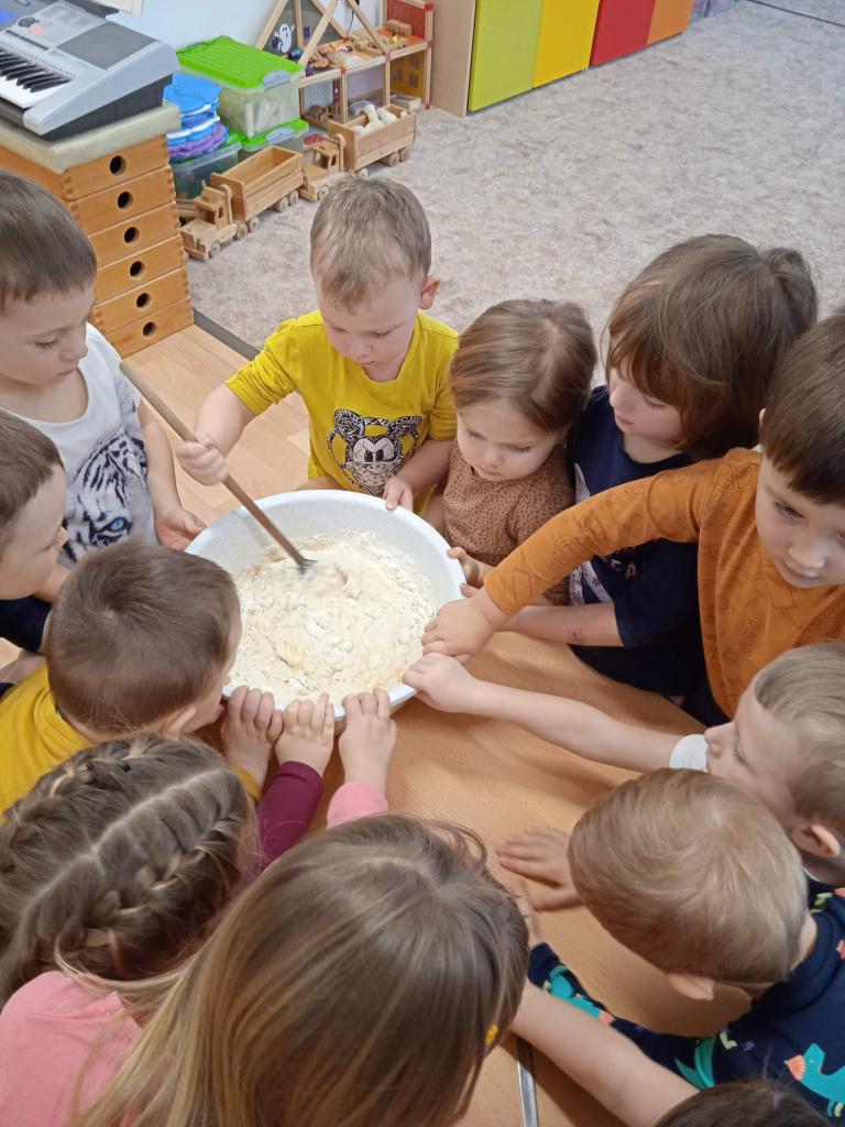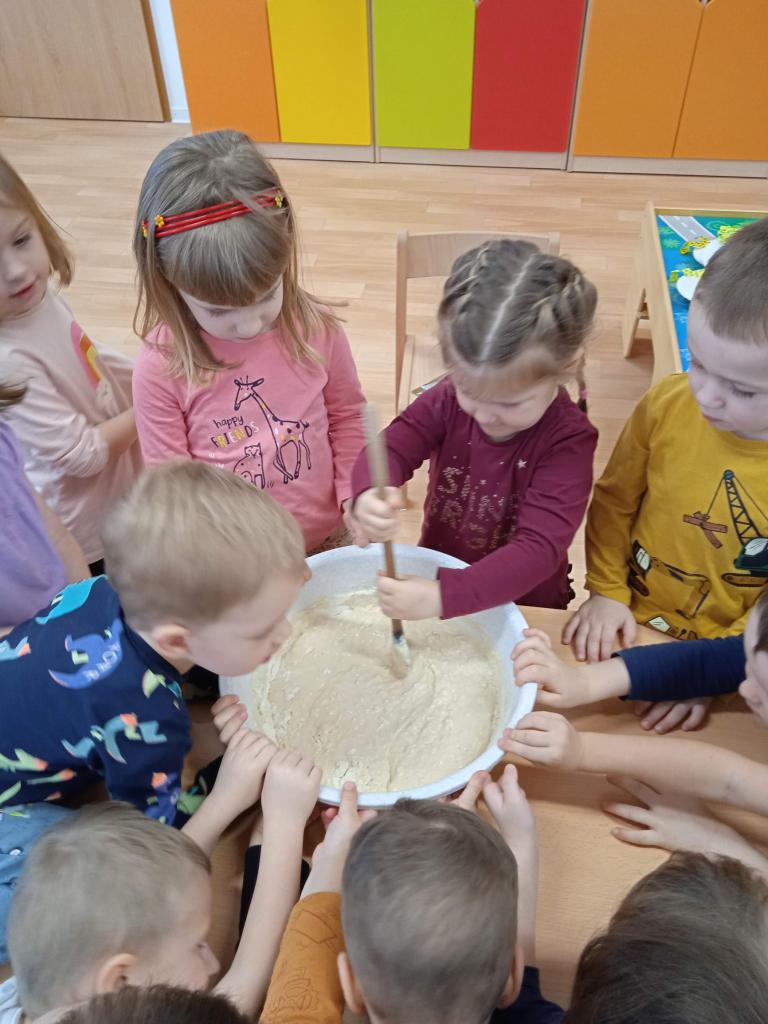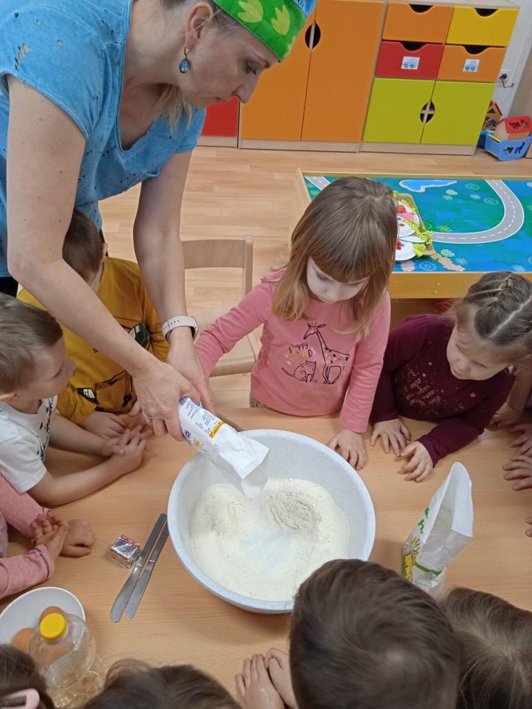 Dnes si dětičky vyzkoušely, jakou práci "to" dá, než se vyrobí dobrý koláček, připravily si suroviny, které promíchaly, potom si každý z bochánku těsta uhnětl svůj koláček, které nám poté paní kuchařka upekla a koláček si každý vzal na cestu domů :-)