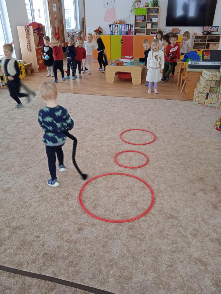 .. výskok s rozběhem na andělský zvoneček, průskok snožmo ohníčky. Nakonec si zatančili na čertovské písně a dostali sladkou odměnu.