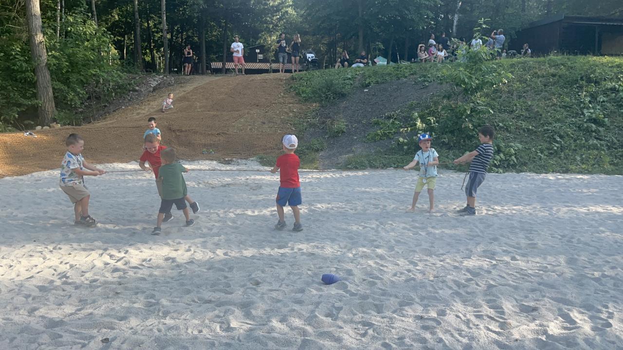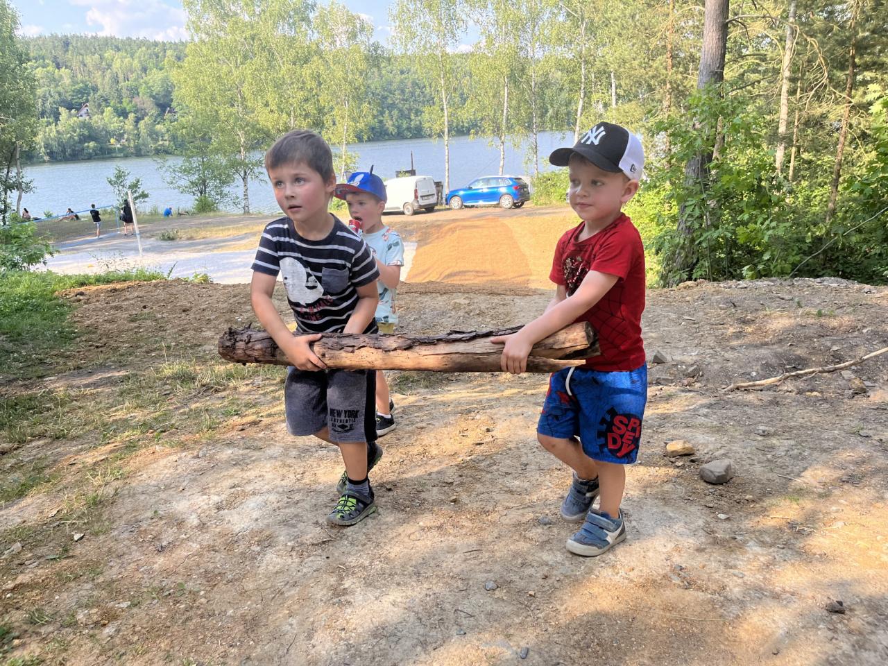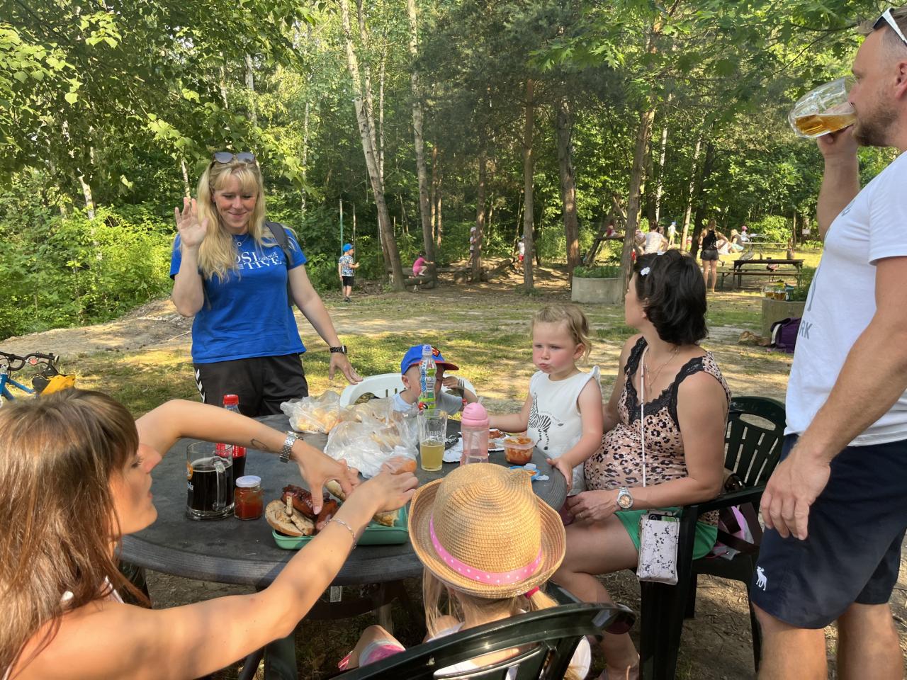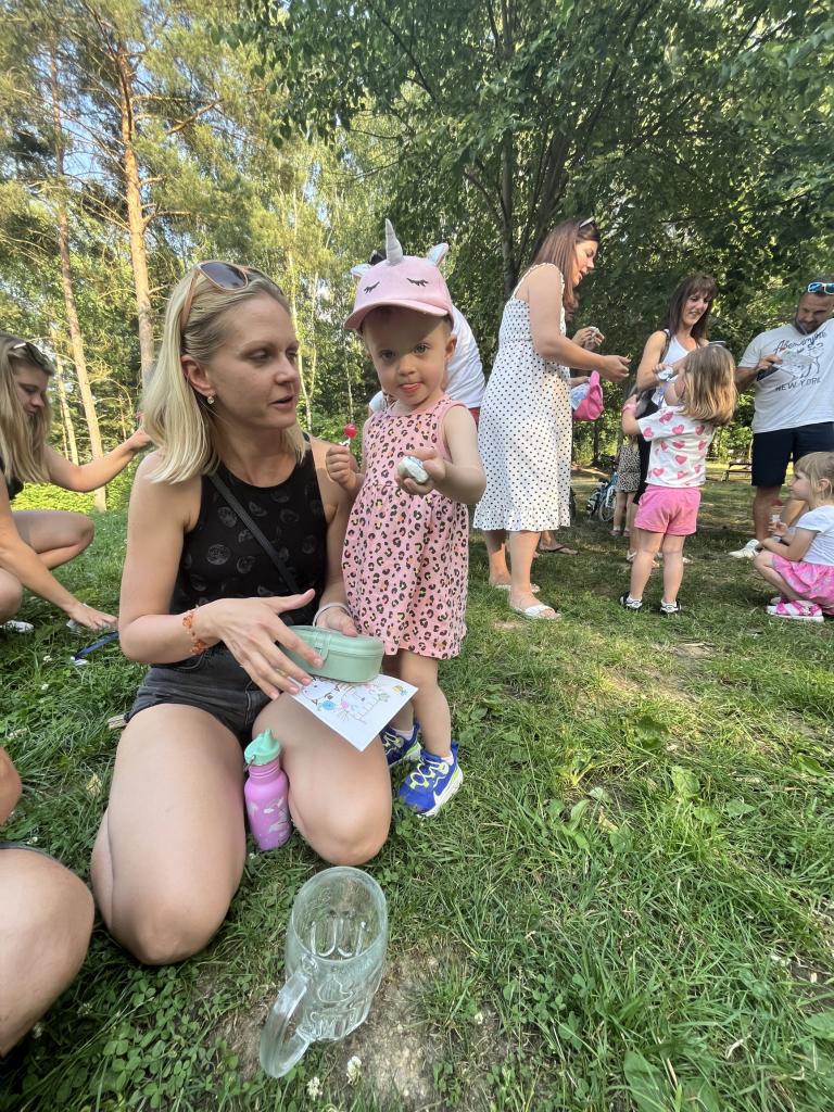 .. opekli buřtíky a poté jim děti zazpívaly červnovou píseň Jede jede... Děti dostaly krásné medaile, které zařídila Jonáškovo maminka, čímž jí ještě jednou moc děkujeme. V průběhu odpoledne se děti vyřádily na beach hřišti a houpačkách.