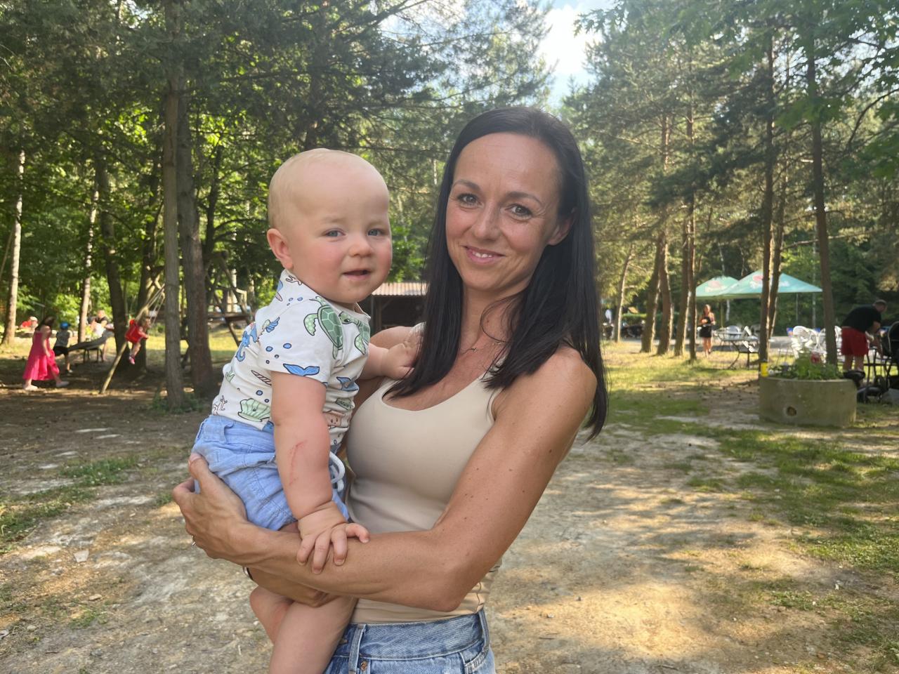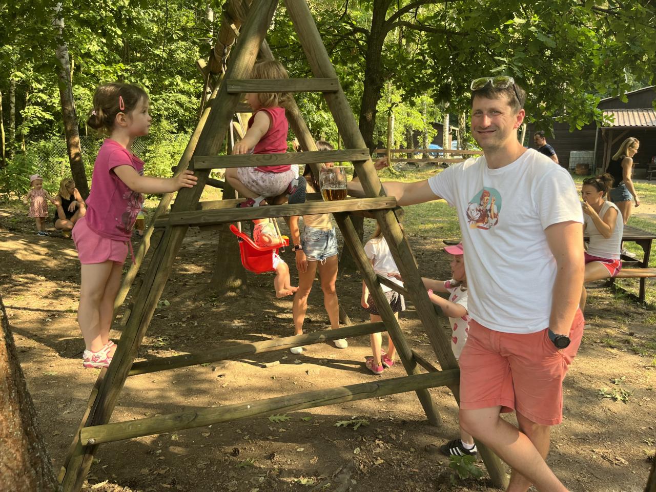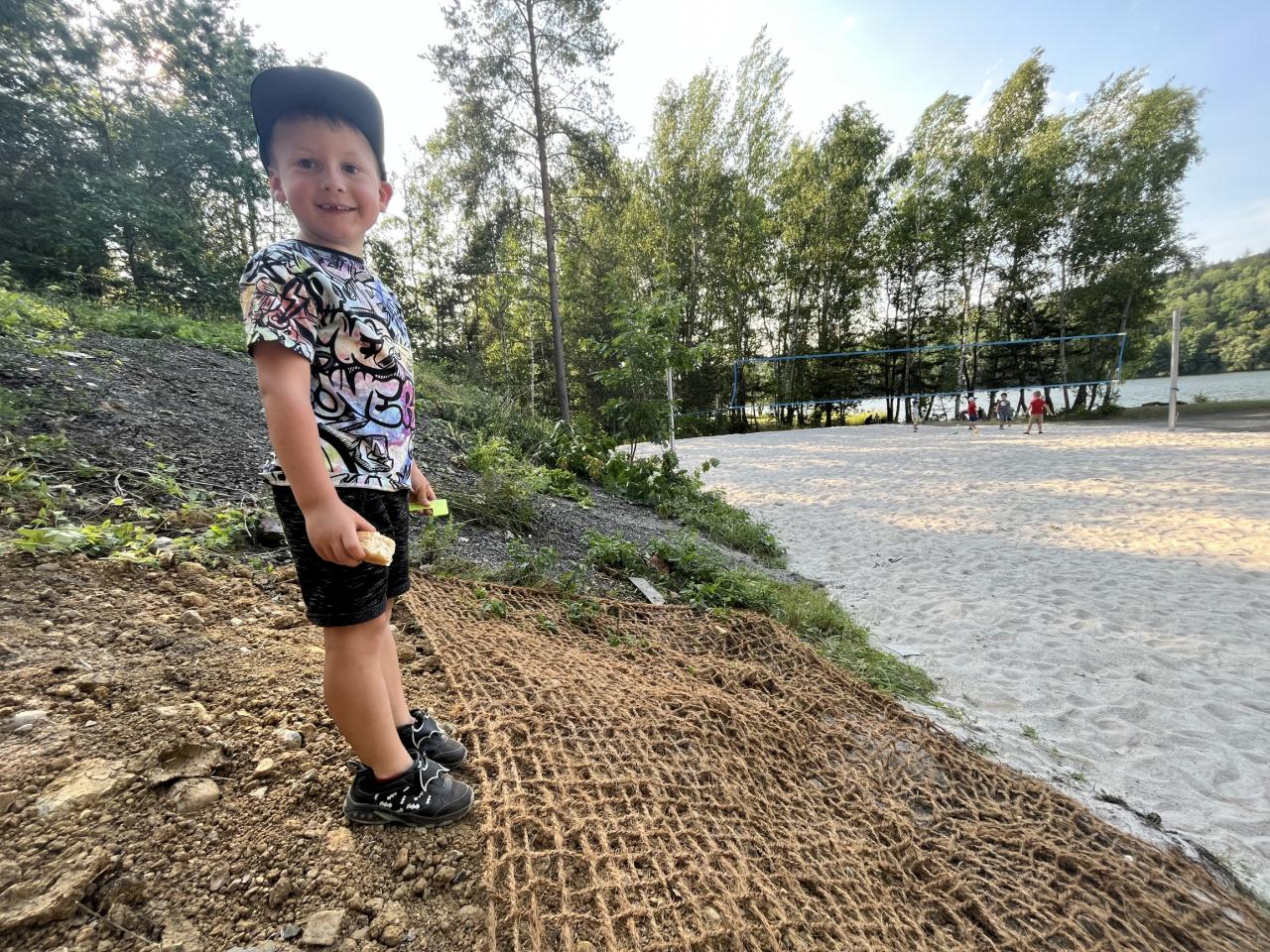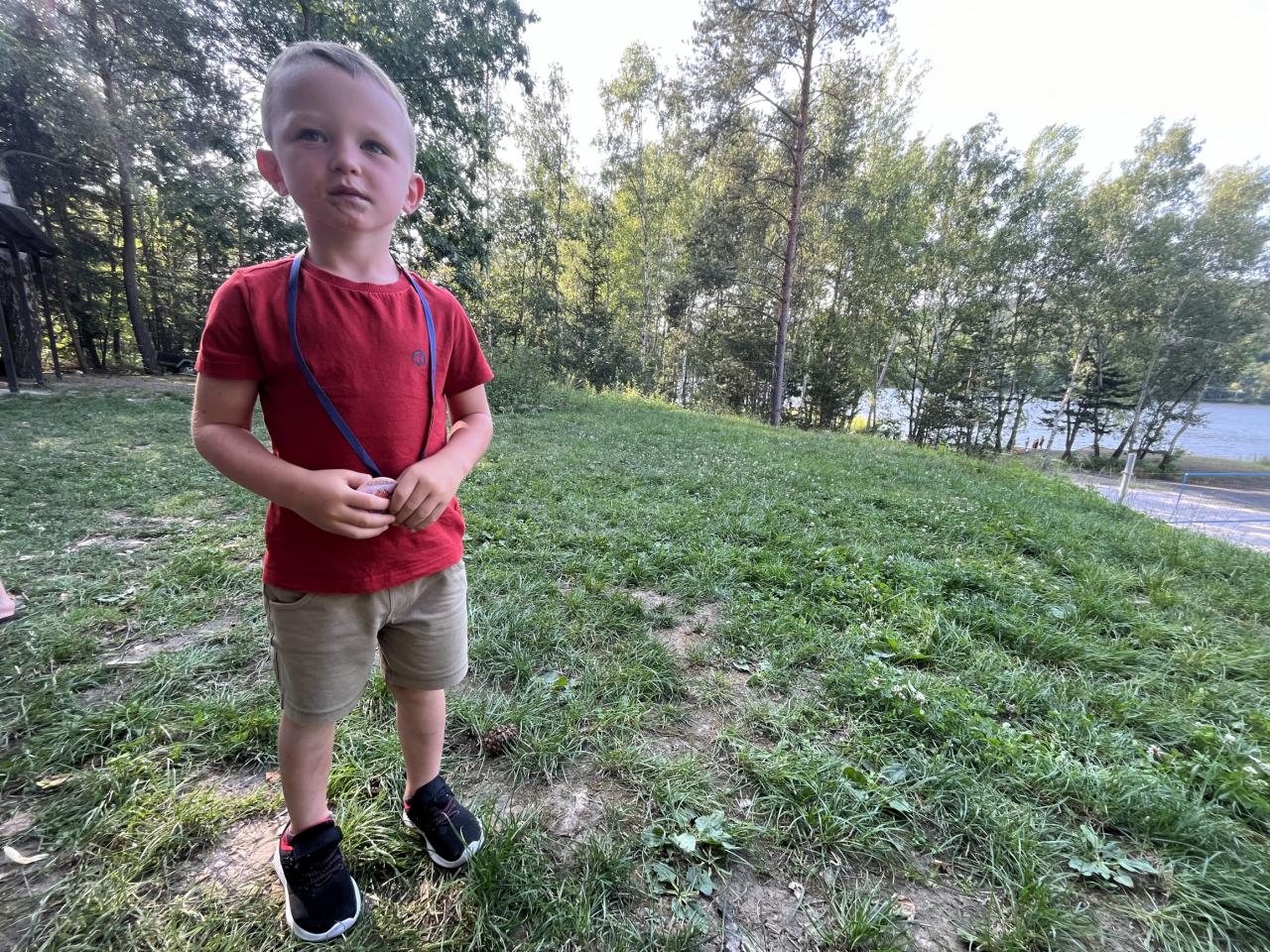 .. opekli buřtíky a poté jim děti zazpívaly červnovou píseň Jede jede... Děti dostaly krásné medaile, které zařídila Jonáškovo maminka, čímž jí ještě jednou moc děkujeme. V průběhu odpoledne se děti vyřádily na beach hřišti a houpačkách.
