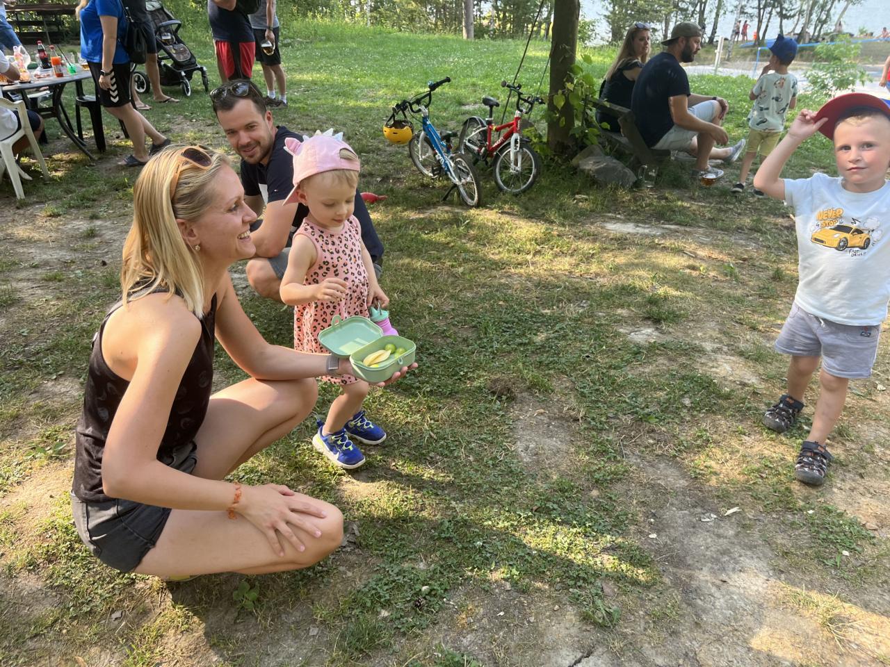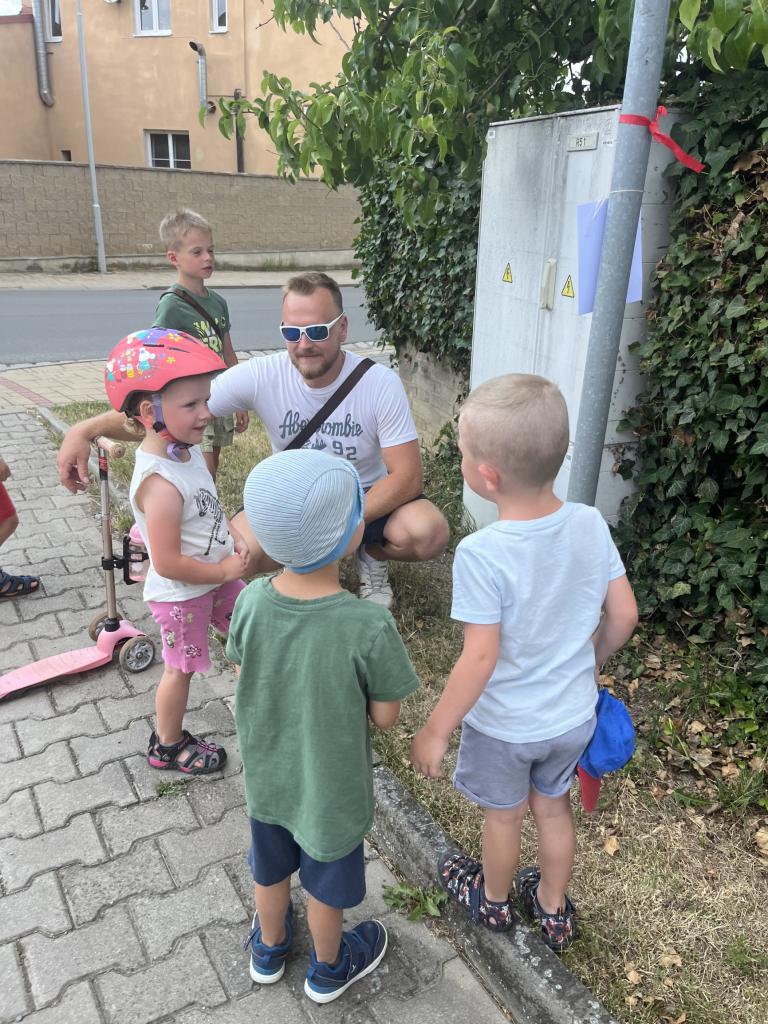 V pondělí se Koťátka vydala odpoledne na poslední stopovačku, společně s rodiči i sourozenci. Některé děti přijely na odrážedle, kole či koloběžce, některé doprovázely maminky s kočárky, ostatní šli pěšky. Cestou je čekalo 5 úkolů z různých oblastí - hmyzu, zpěvu, sportu atd. V kempu si všichni..