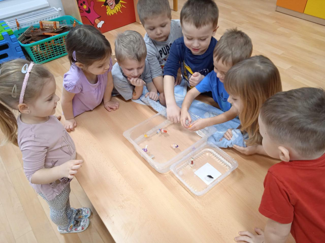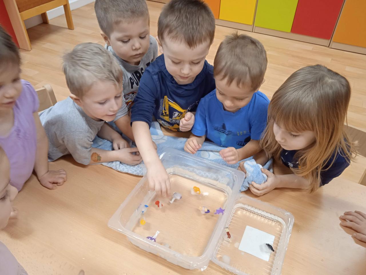 Během týdne se děti z Koťátek dozvěděly, jak vzniká vločka a sníh, že si z něj můžeme postavit sněhuláka a koule. Opakovali jsme geometrické tvary, tvořili sněhuláčka ze sklenice a hlavně dělali spoustu pokusů se sněhem a ledy..