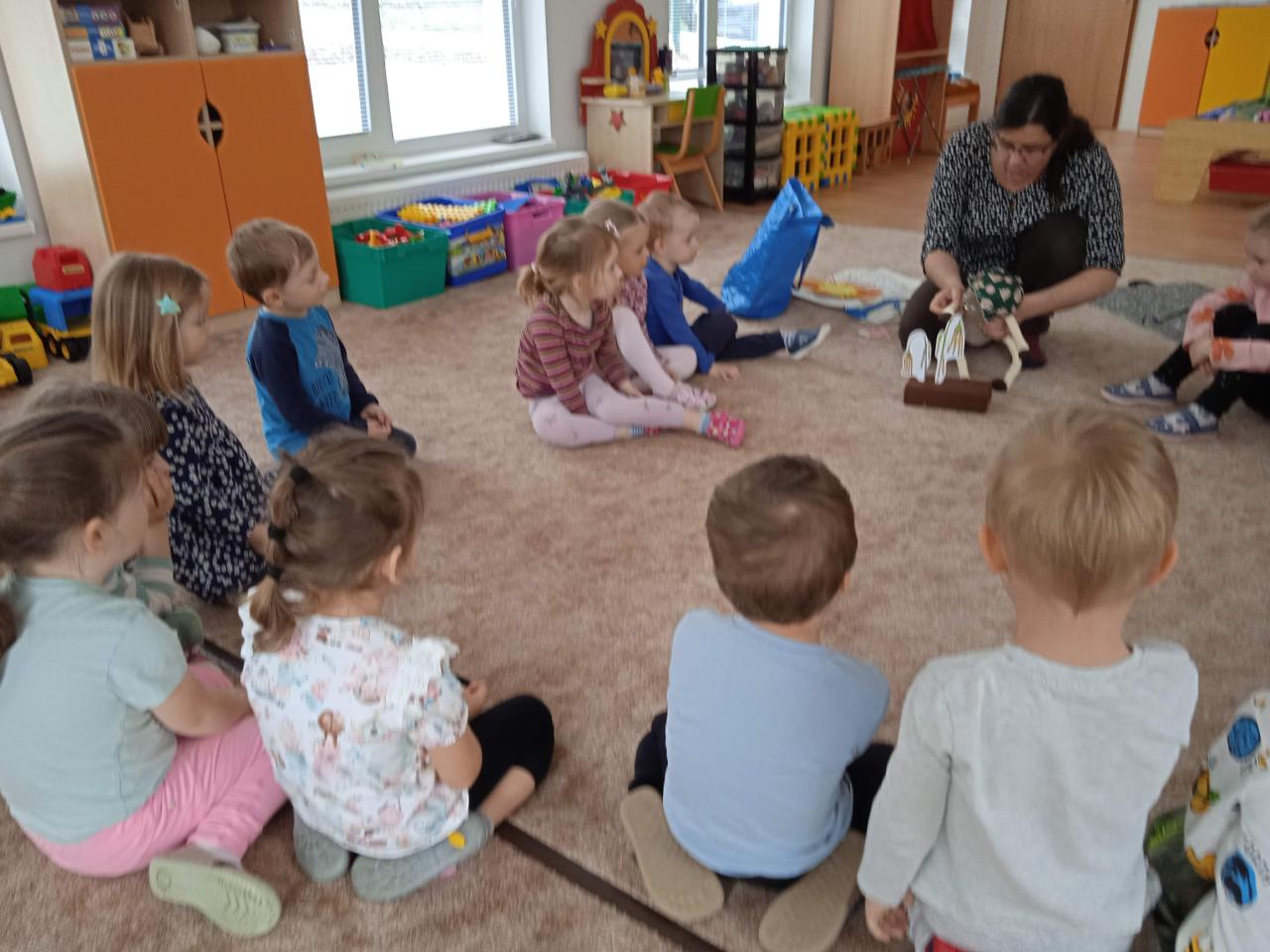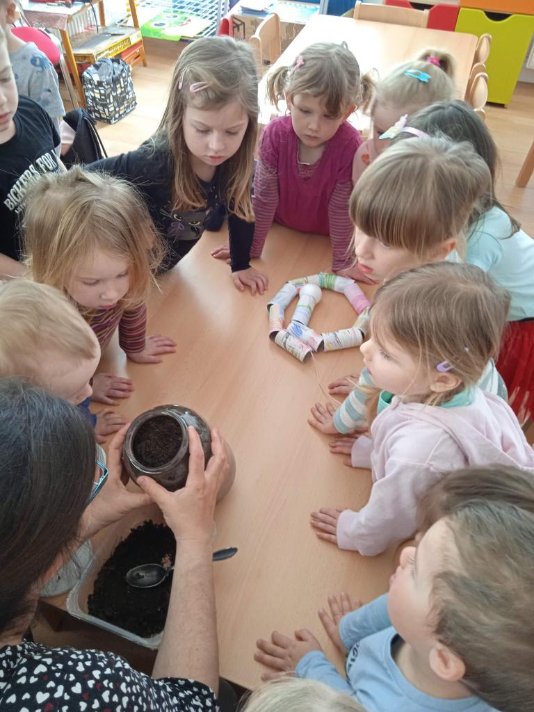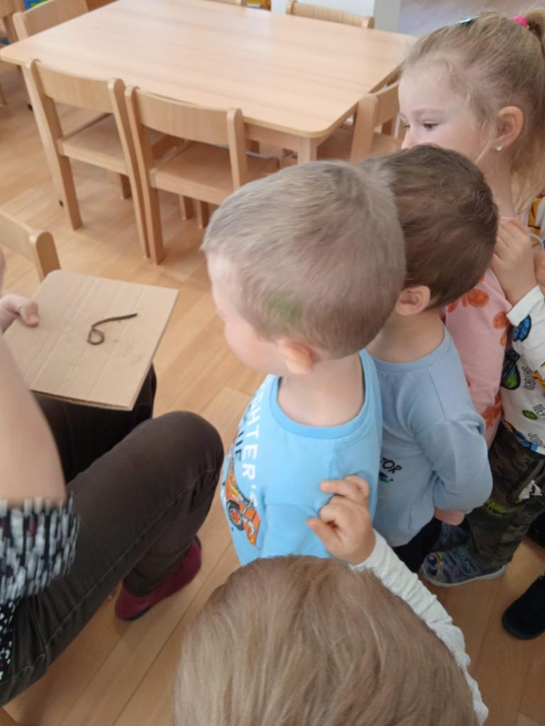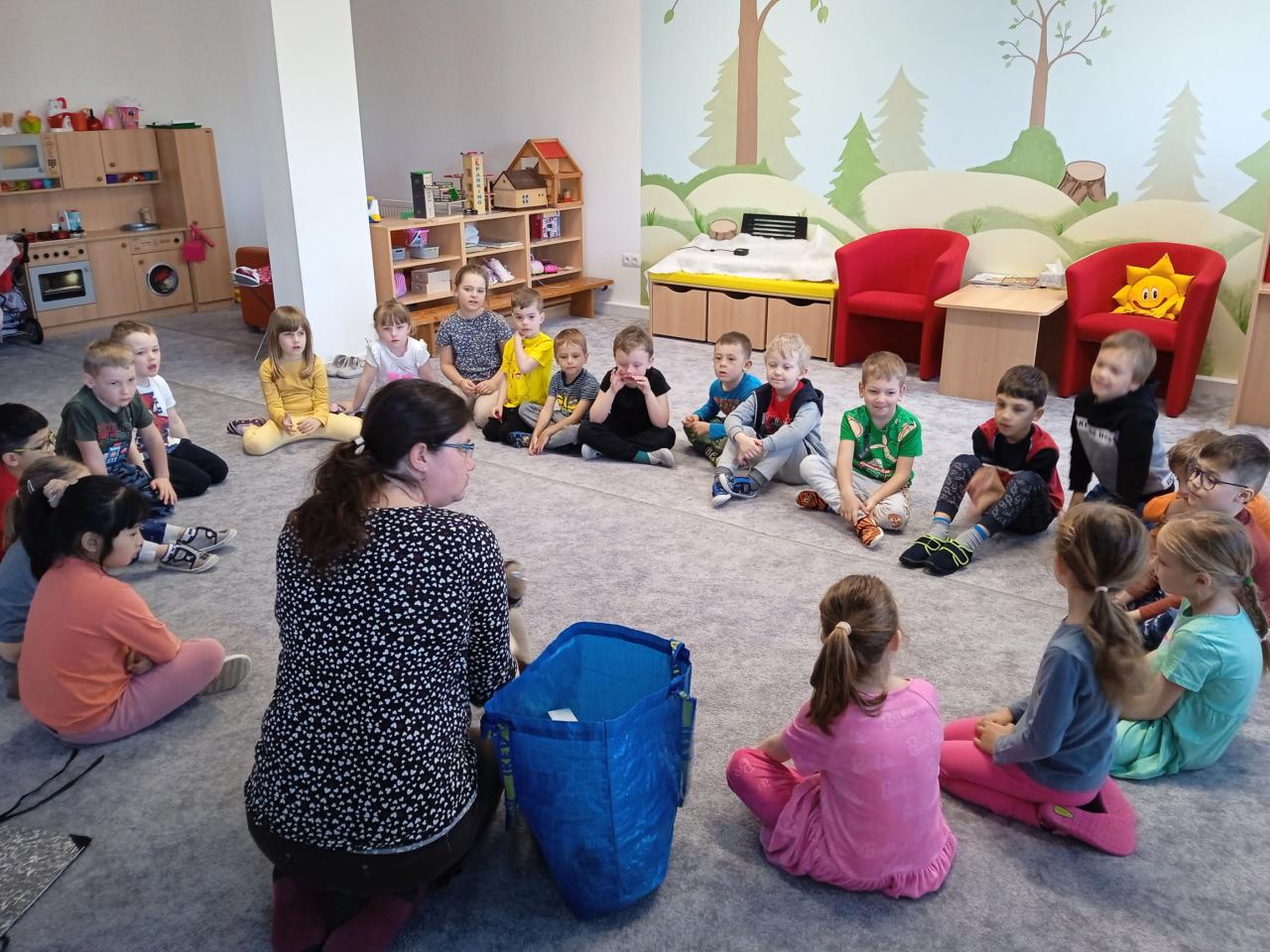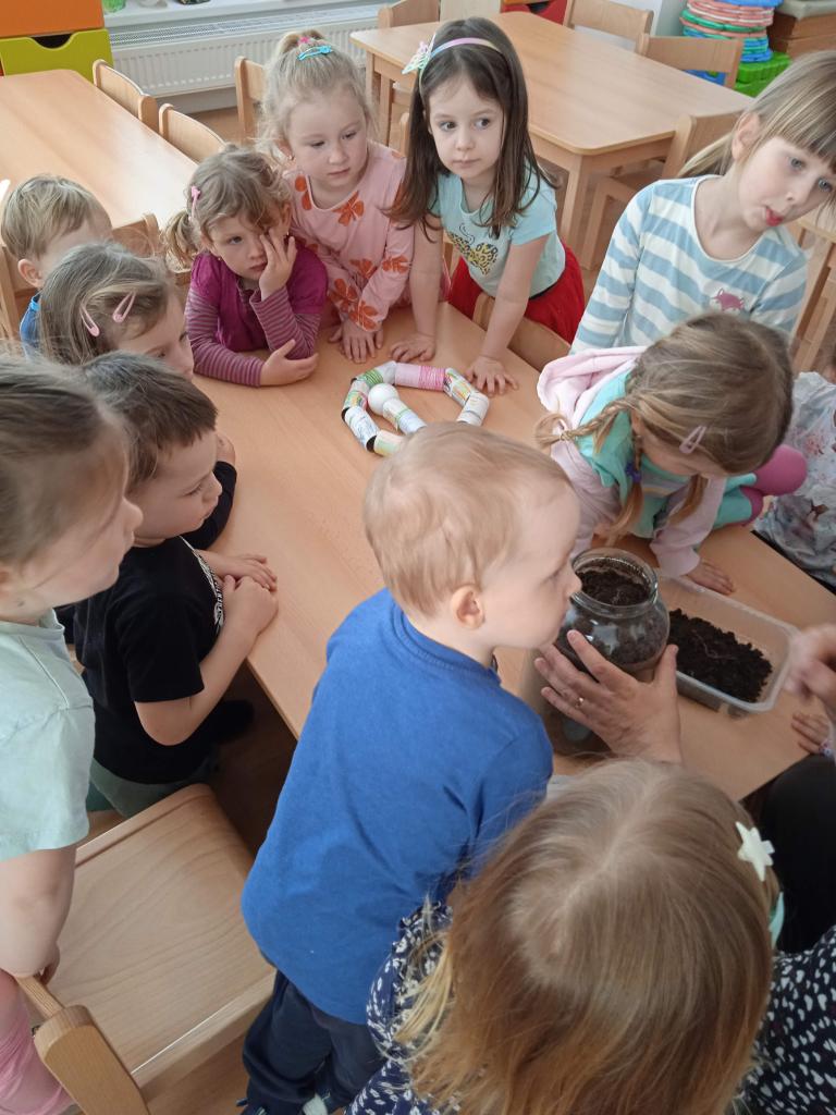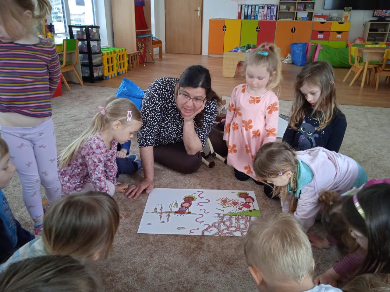 V úterý k nám přijela paní z Muzea Dr. Bohuslava Horáka v Rokycanech s programem "Jak jsem potkal žížalu". Děti se dozvěděly vše o žížalách, kde žijí, proč jsou nám užitečné, také poslouchaly, jaké zvuky žížala vydává. Potom do velké sklenice paní nasypala hlínu se žížalami. Přikryli jsme vše..