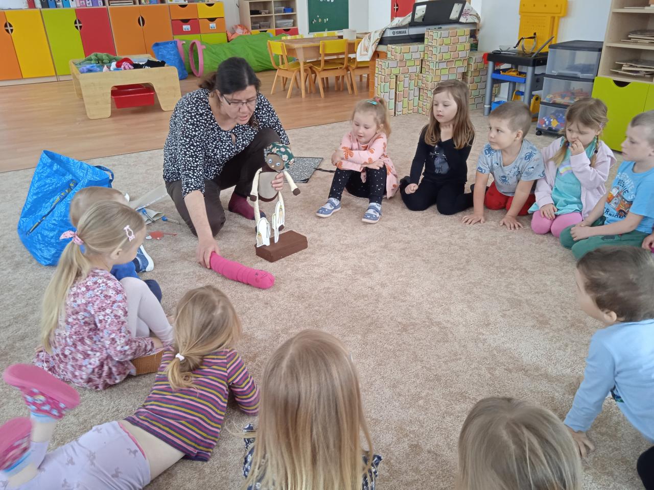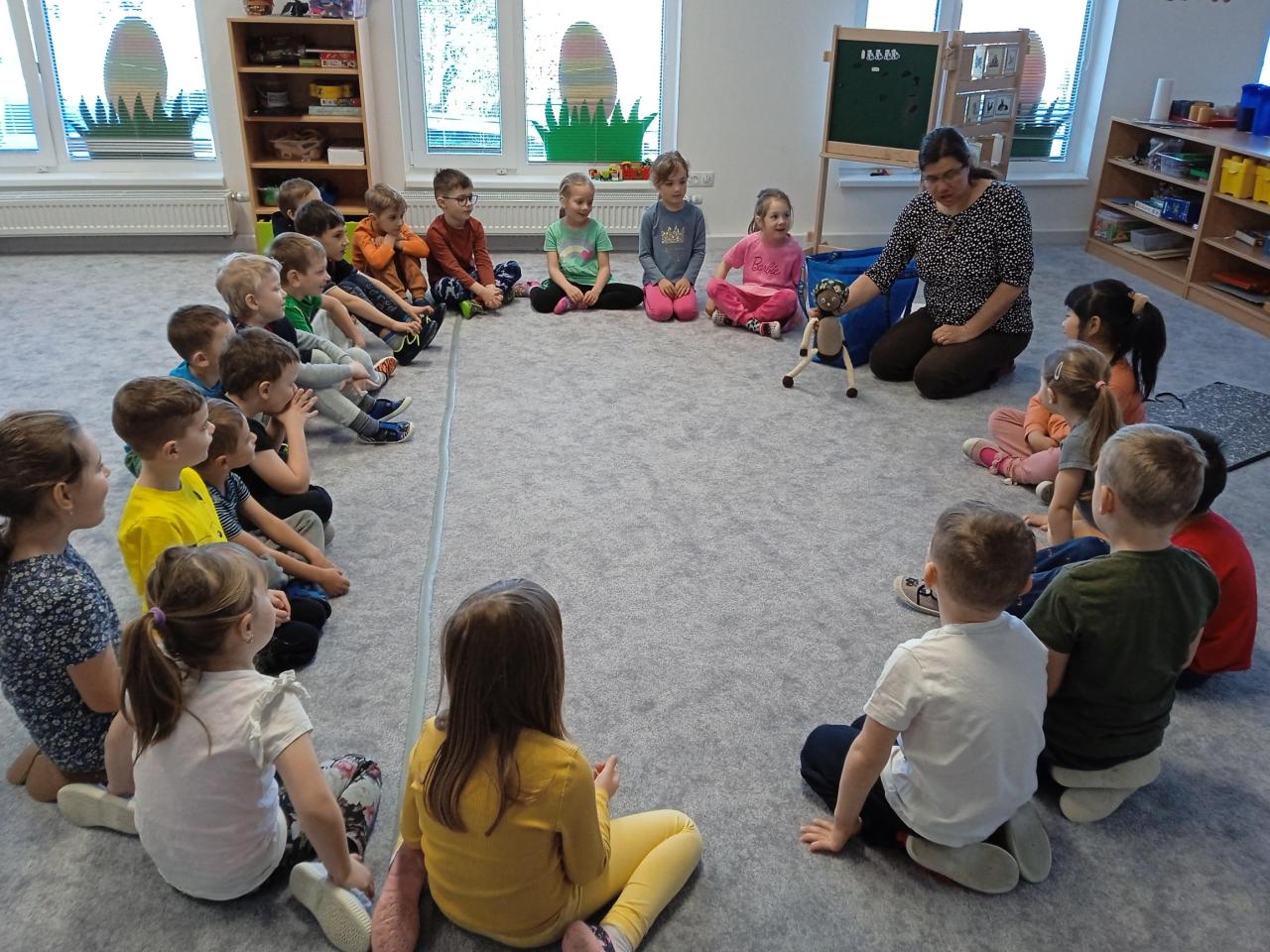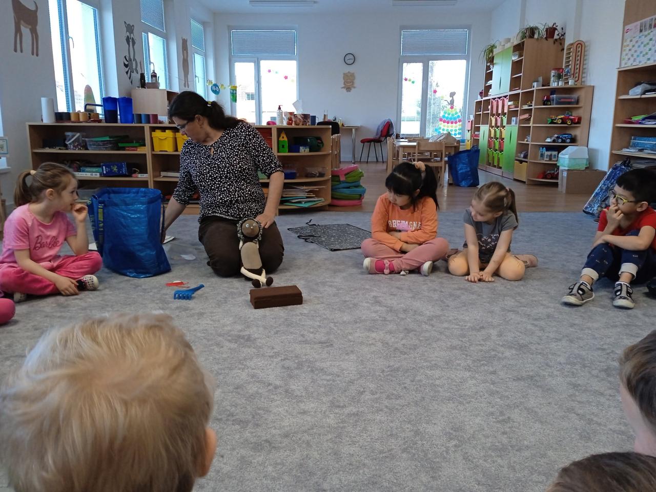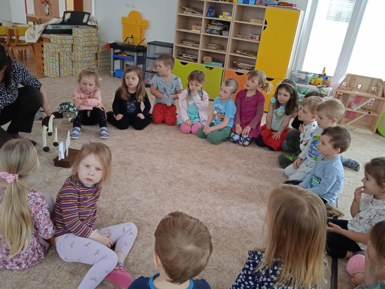 V úterý k nám přijela paní z Muzea Dr. Bohuslava Horáka v Rokycanech s programem "Jak jsem potkal žížalu". Děti se dozvěděly vše o žížalách, kde žijí, proč jsou nám užitečné, také poslouchaly, jaké zvuky žížala vydává. Potom do velké sklenice paní nasypala hlínu se žížalami. Přikryli jsme vše..