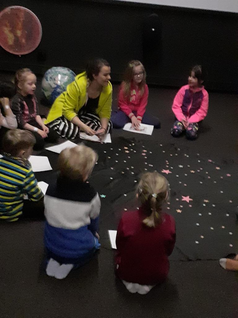 1) První skupina měla téma Země a její kamarádi: zde se děti dozvěděly co je hvězda, jak se otáčí Země kolem své osy, jaký je pohyb měsíce