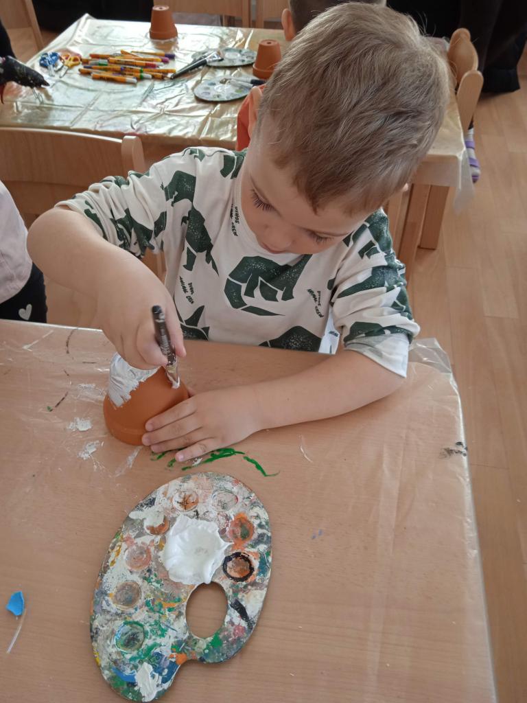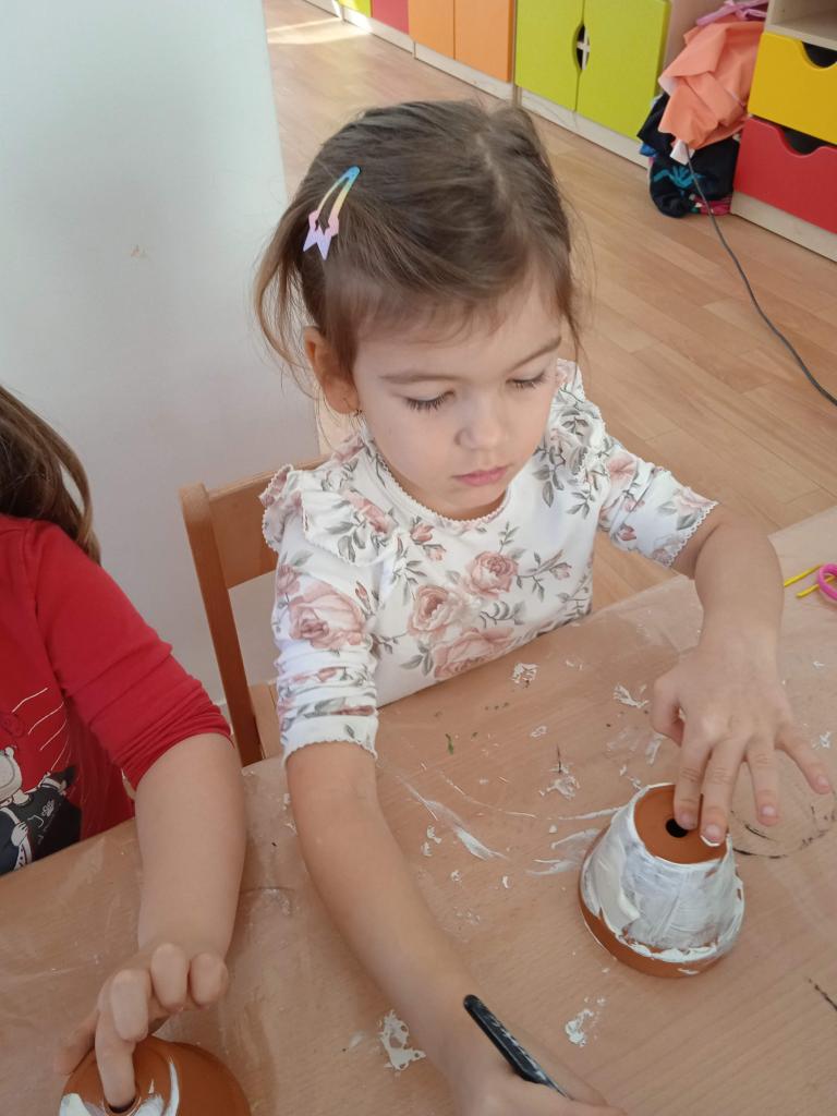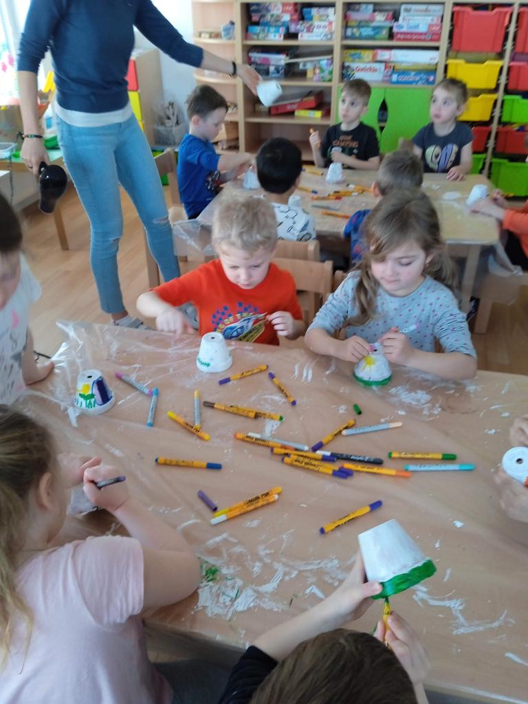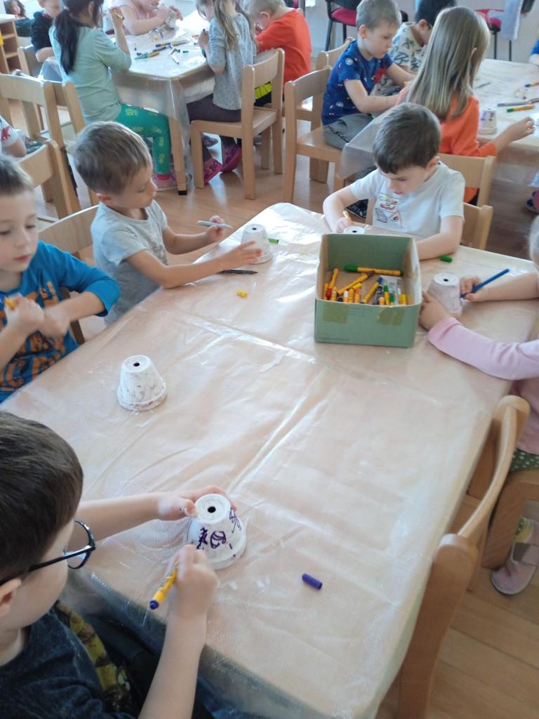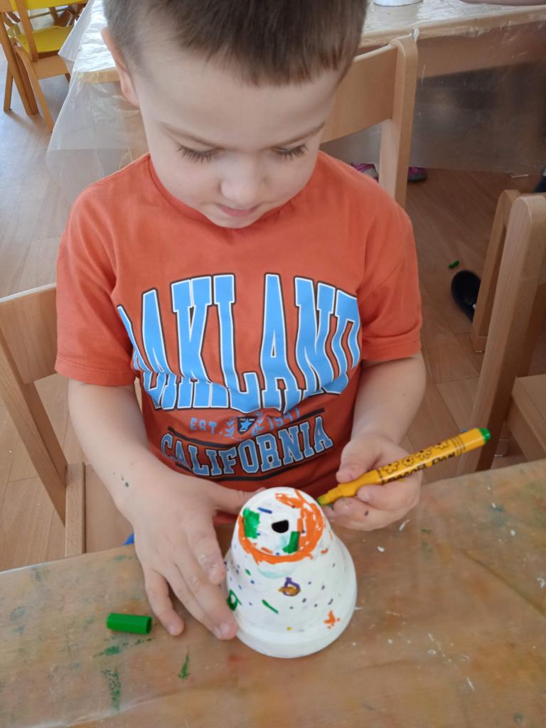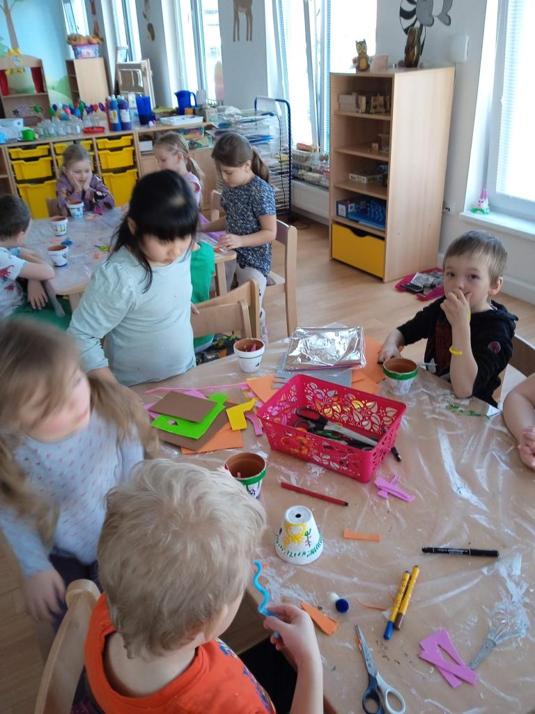 V úterý nás navštílila paní z Kolorky v Rokycanech, kdy si děti vyrobily krásného zajíčka z květníku, který si sami natřely akrylovou barvou, pomalovaly dle fantazie fixou, vystřihly ouška, nalepily oči, nos ocásek a vousky.