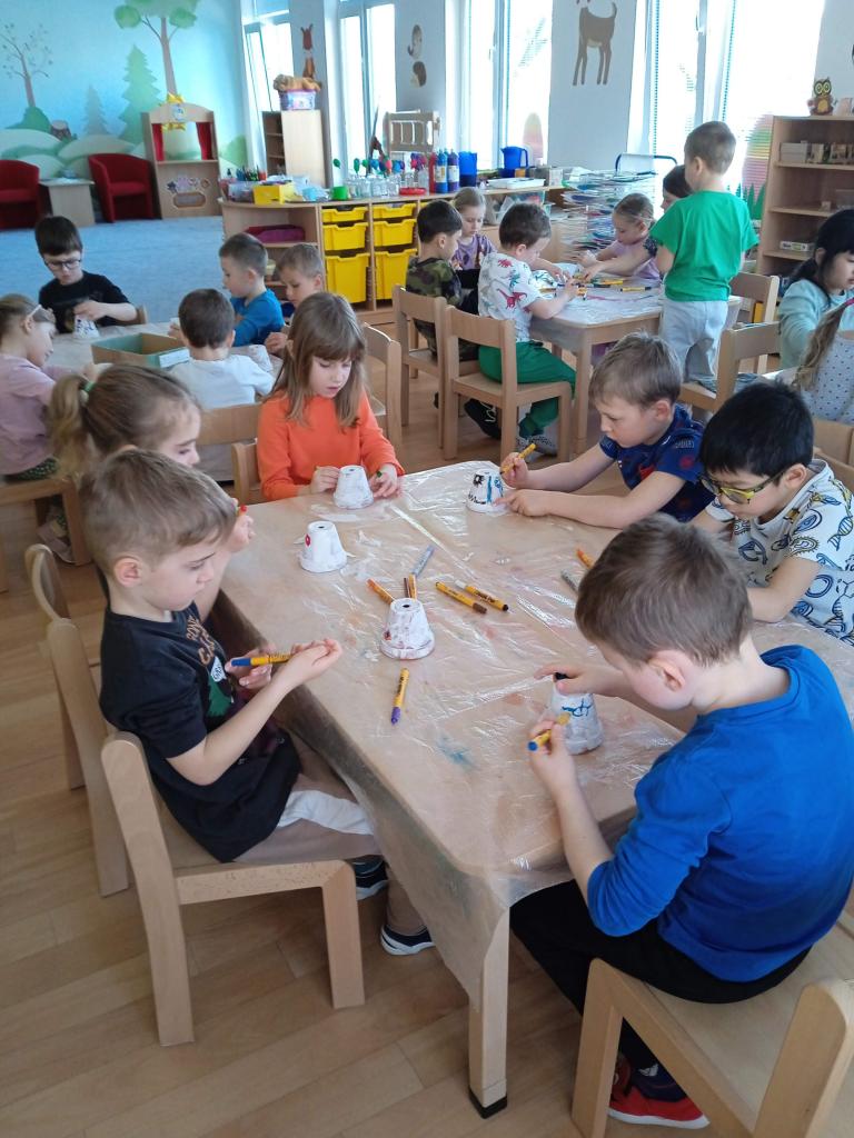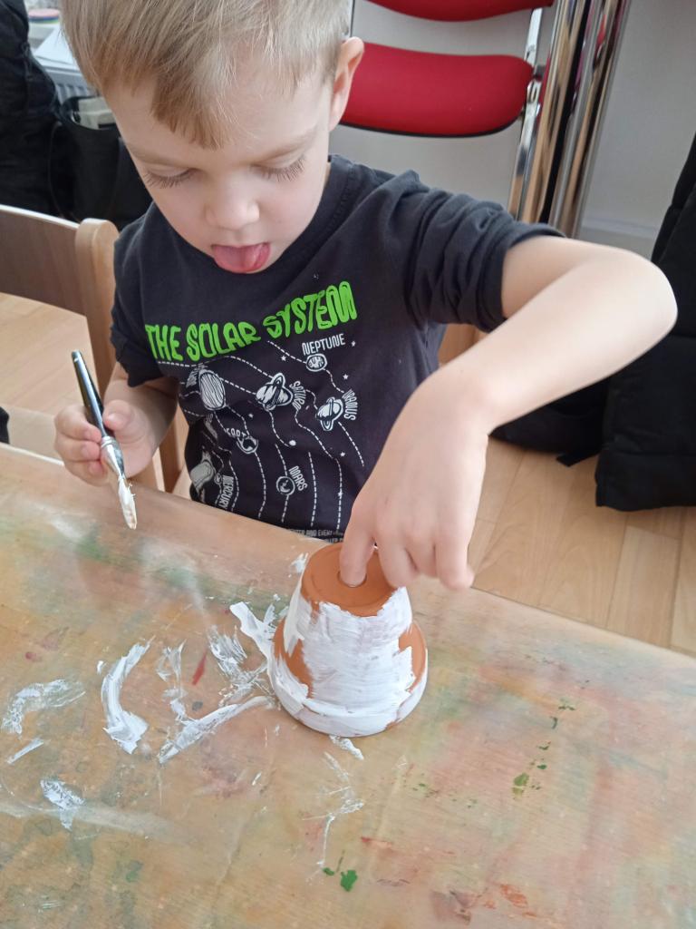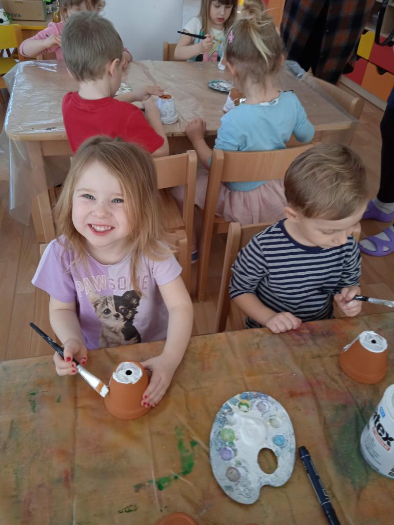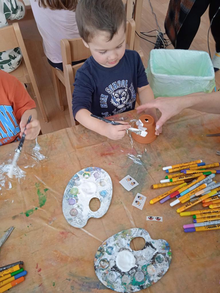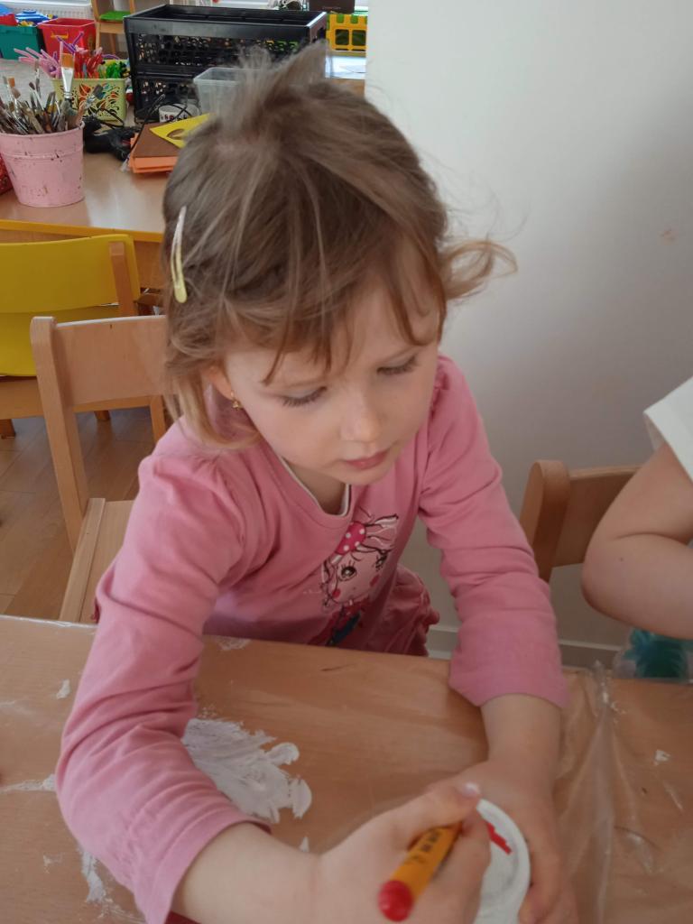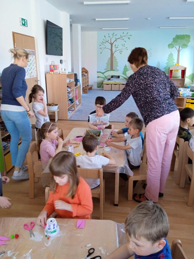 V úterý nás navštílila paní z Kolorky v Rokycanech, kdy si děti vyrobily krásného zajíčka z květníku, který si sami natřely akrylovou barvou, pomalovaly dle fantazie fixou, vystřihly ouška, nalepily oči, nos ocásek a vousky.