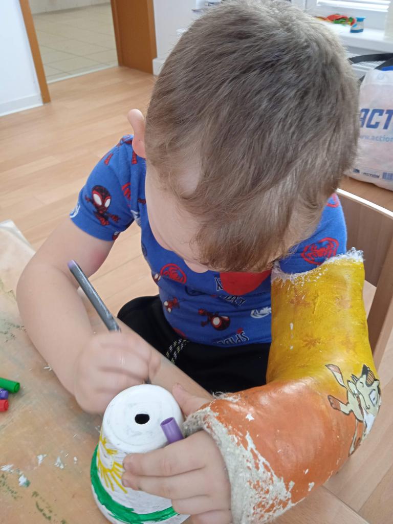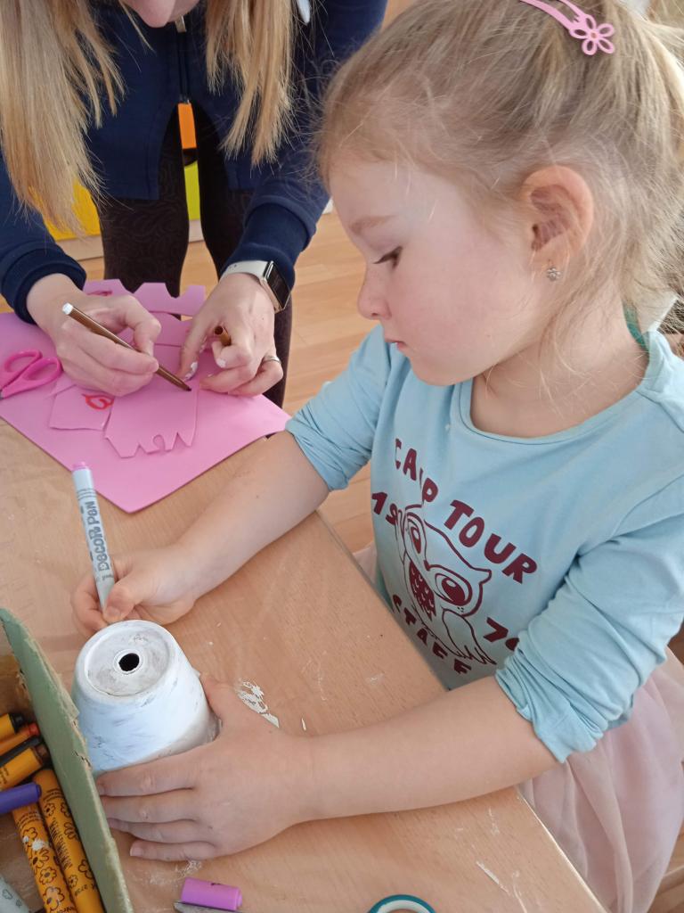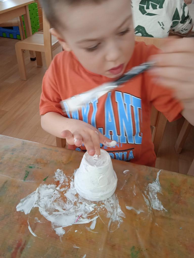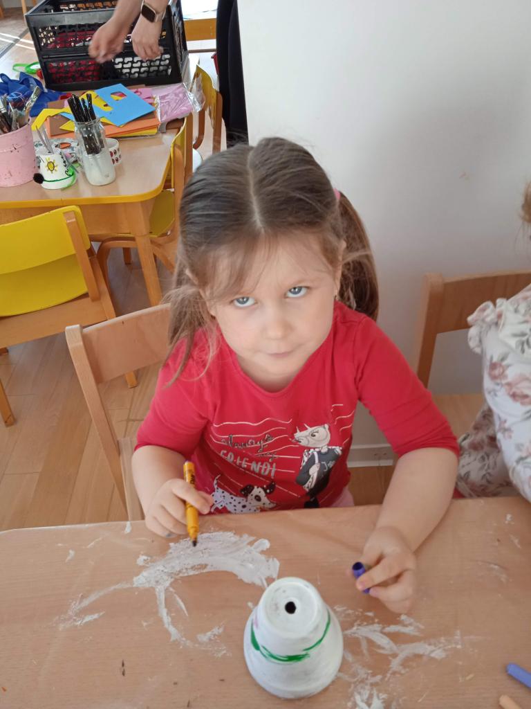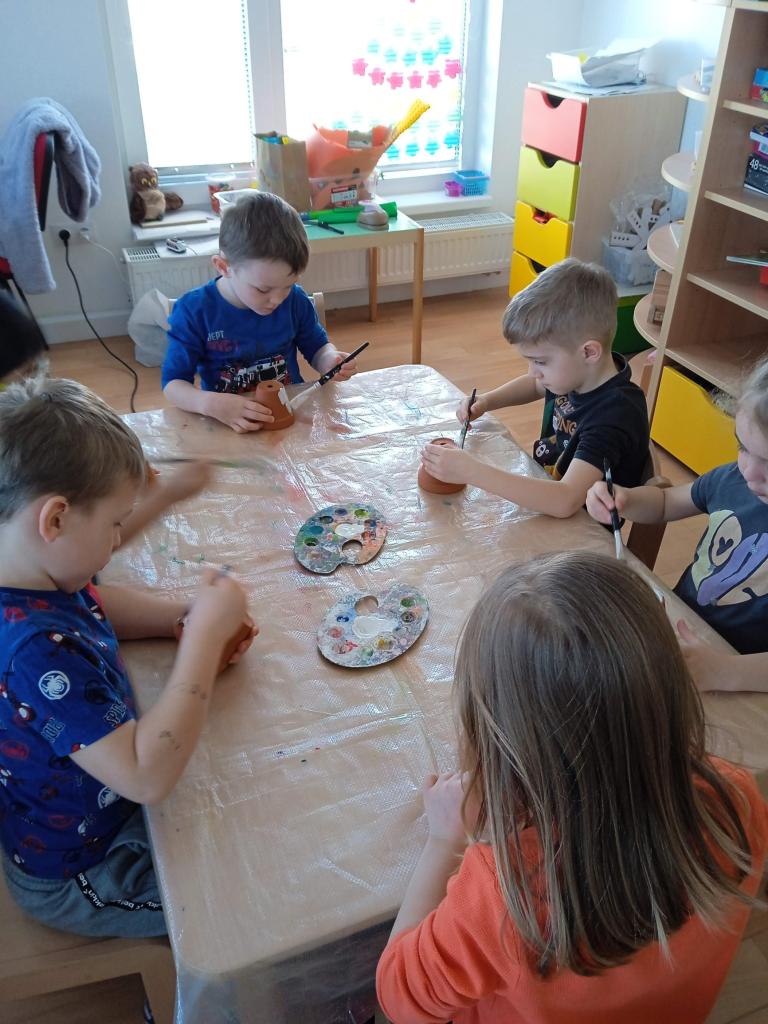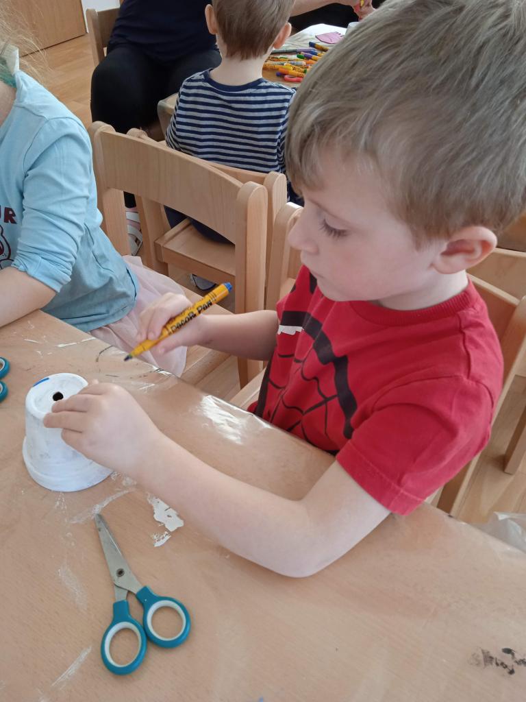 V úterý nás navštílila paní z Kolorky v Rokycanech, kdy si děti vyrobily krásného zajíčka z květníku, který si sami natřely akrylovou barvou, pomalovaly dle fantazie fixou, vystřihly ouška, nalepily oči, nos ocásek a vousky.