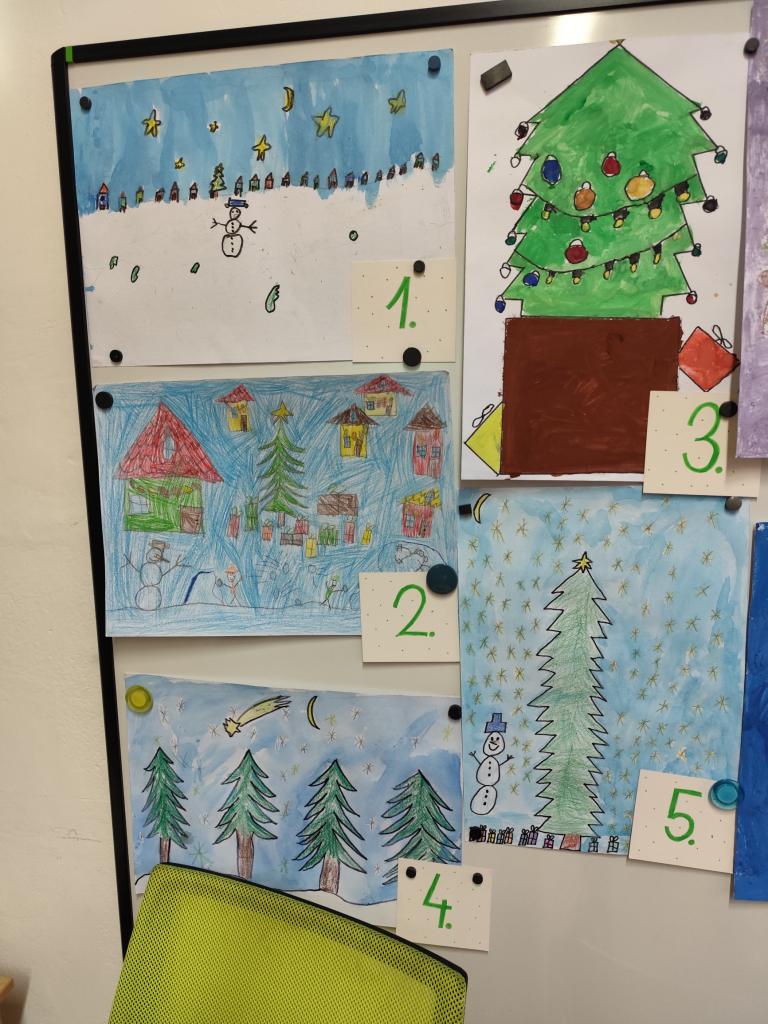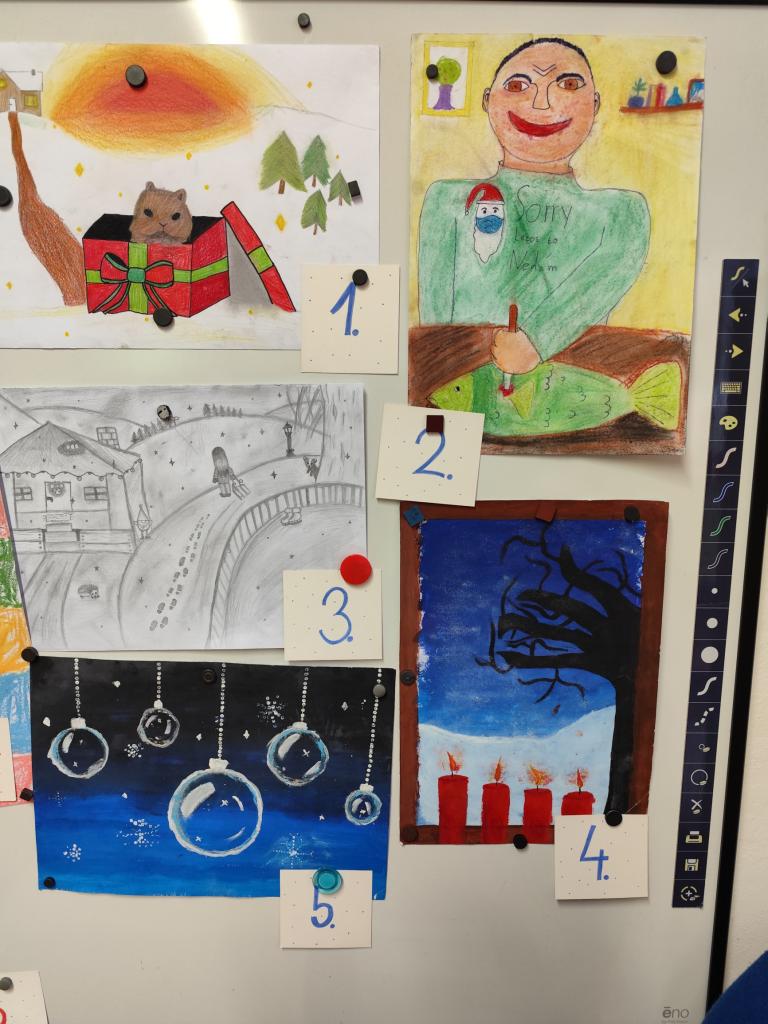 Žáci 4. a 5. ročníku pořádali na vánoční besídce výtvarnou soutěž.